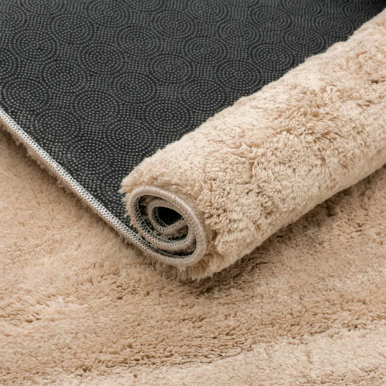 - Antypoślizgowe tworzywo na spodzie dywanu sprawia, że stabilnie przylega on do podłogi.