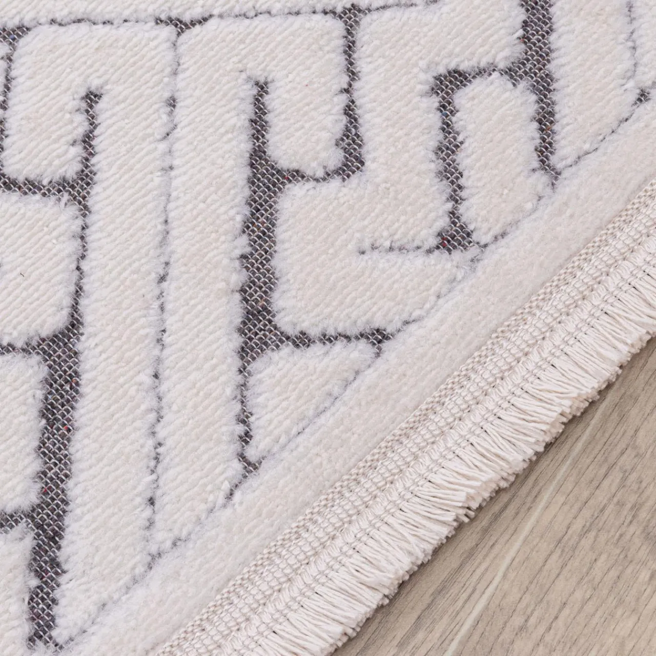 Dzięki wzorowi 3D na kremowym runie, dywanik doda Twojemu wnętrzu przytulnego charakteru.