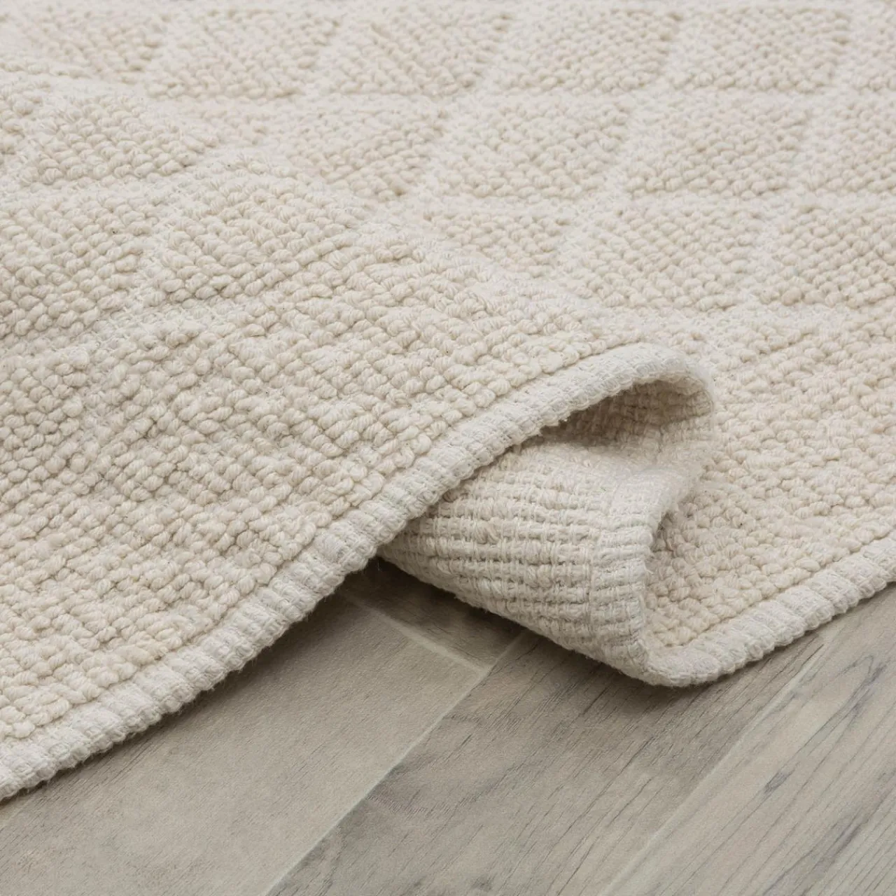 Na uwagę zasługuje geometryczny wzór chodnika: małe romby obwiedzione ramką. Sprawi, że idealnie sprawdzi się on we wnętrzu utrzymanym w nowoczesnym i skandynawskim stylu.