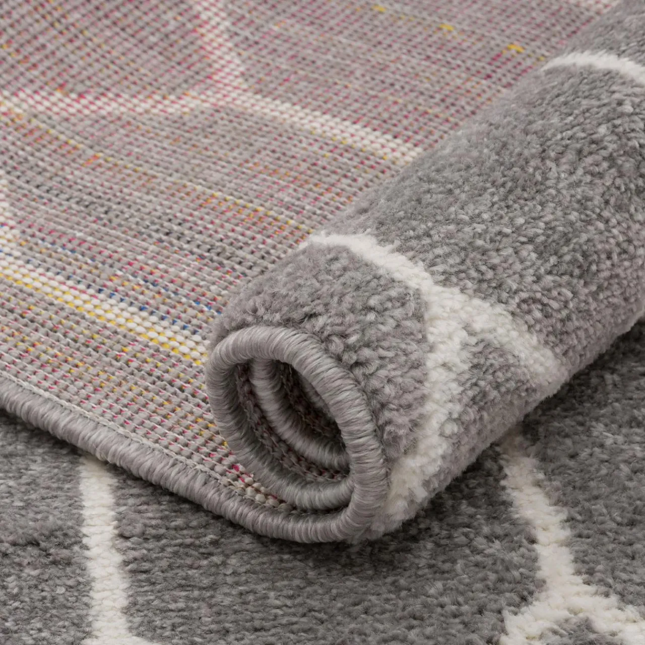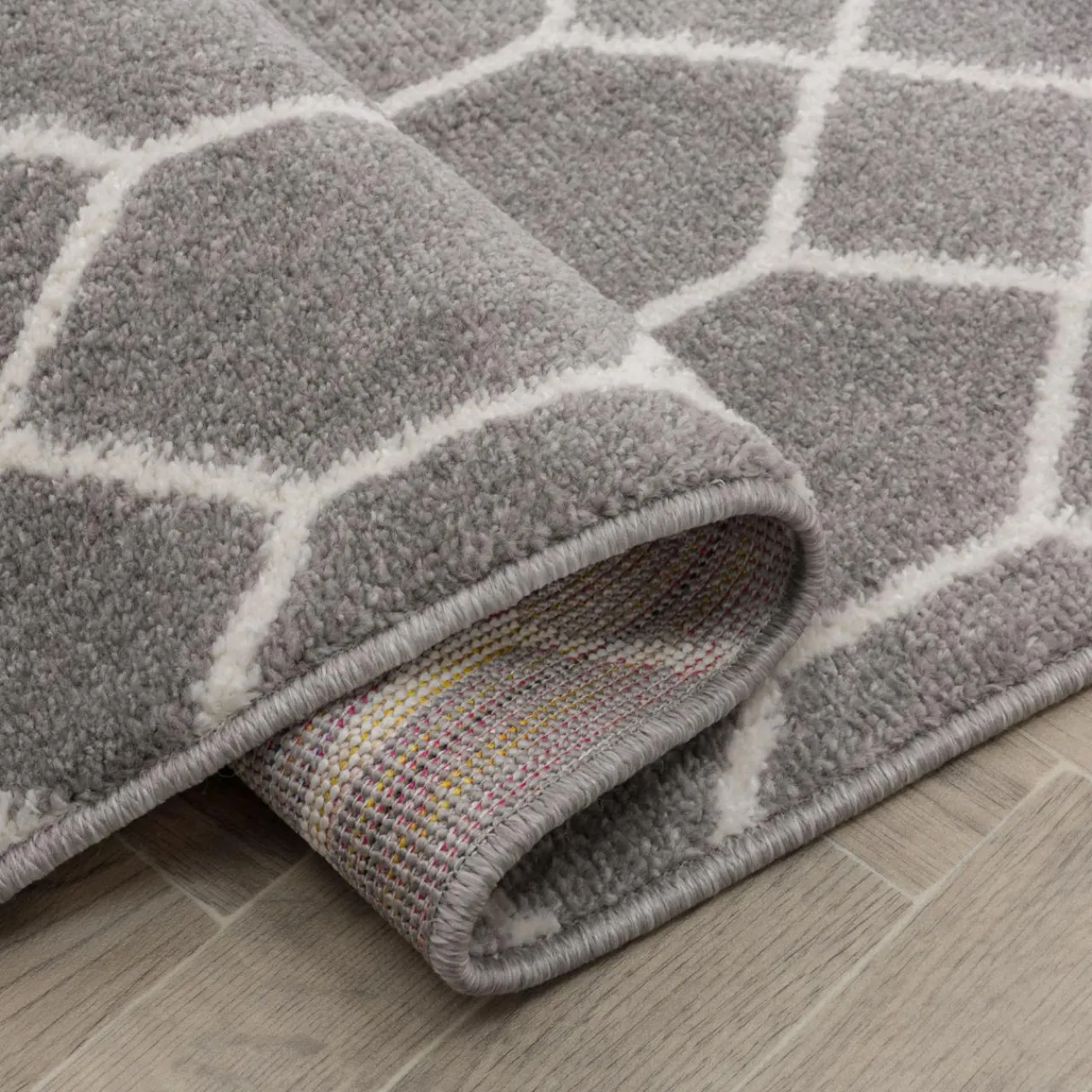 Jeśli lubisz proste linie i uczucie uporządkowania, dywanik IMOLA zadowoli Cię zestawieniem białych geometrycznych wzorów. Dzięki temu jest ciekawy i delikatnie przyciąga uwagę.