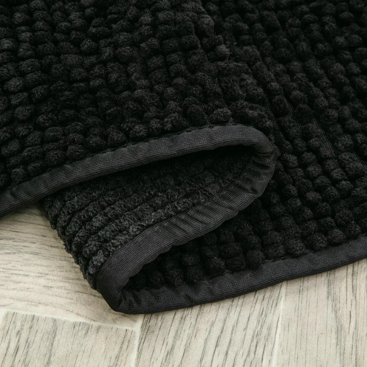 Czarny kolor dywanika łazienkowego TOLEDO pasuje do szarej aranżacji i pięknie się wyróżni na tle jasnych odcieni.