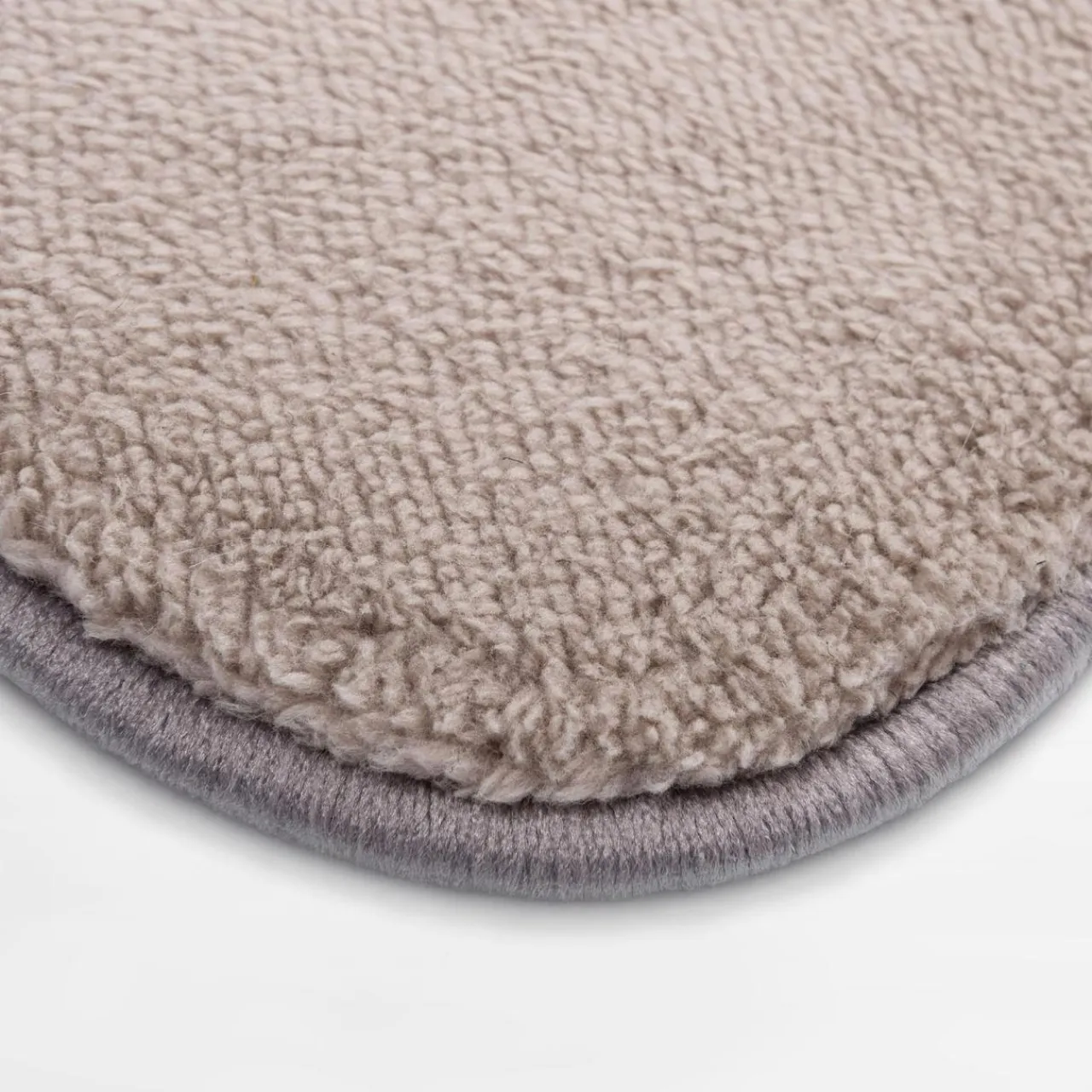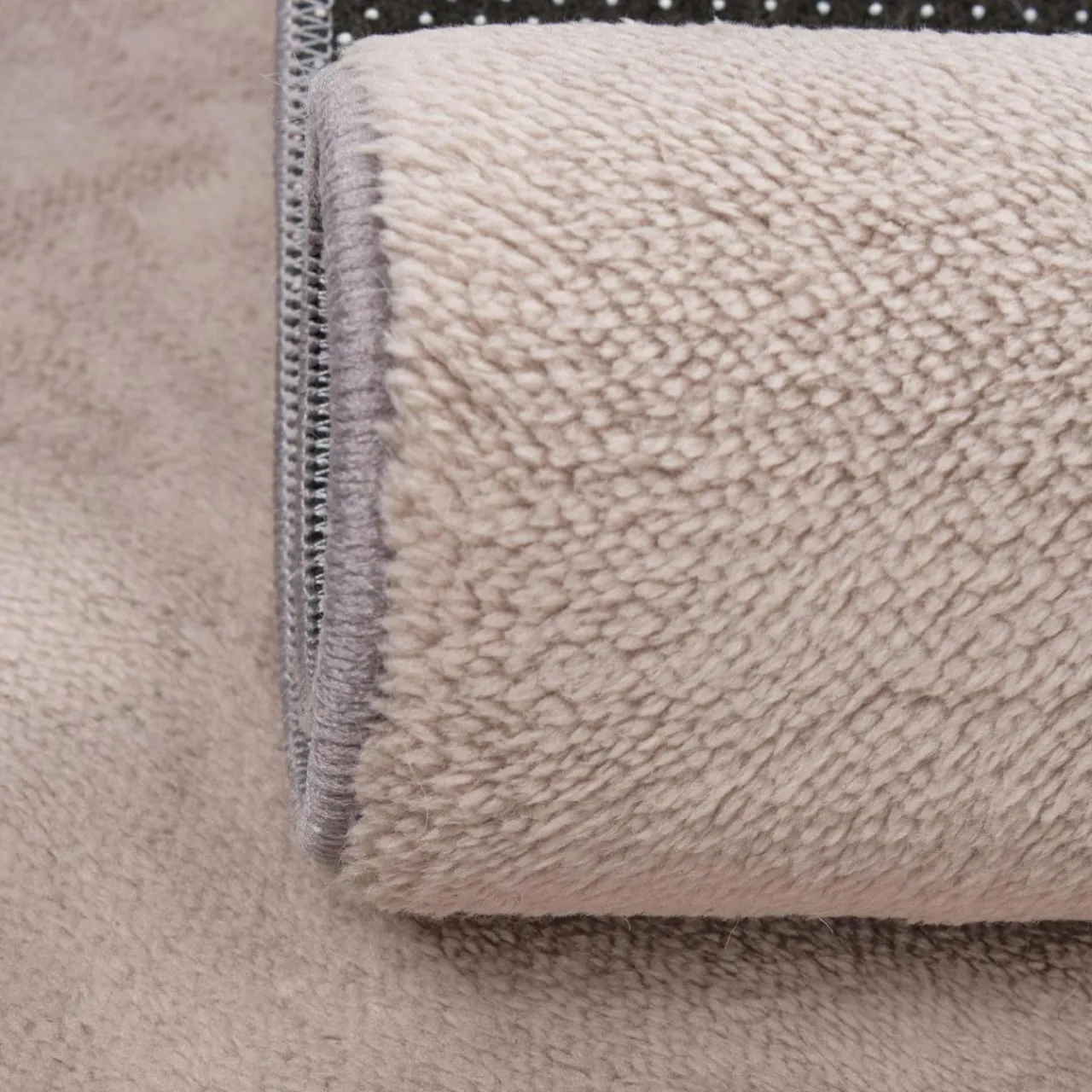 Uniwersalny dywanik w kolorze ciemnobeżowym będzie pasował niemal do każdej aranżacji łazienki.