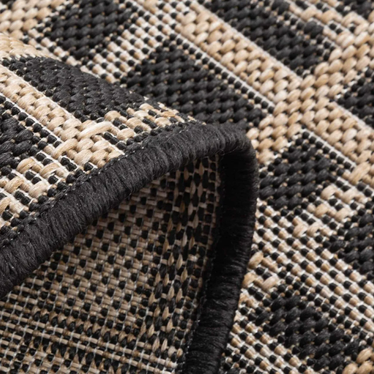 Dywan JUTA to stylowy dodatek, który przyciąga uwagę nowoczesnym wzornictwem. Połączenie ciemnej bazy z jasnymi, przecinającymi się liniami nadaje wnętrzu wyrazistości.