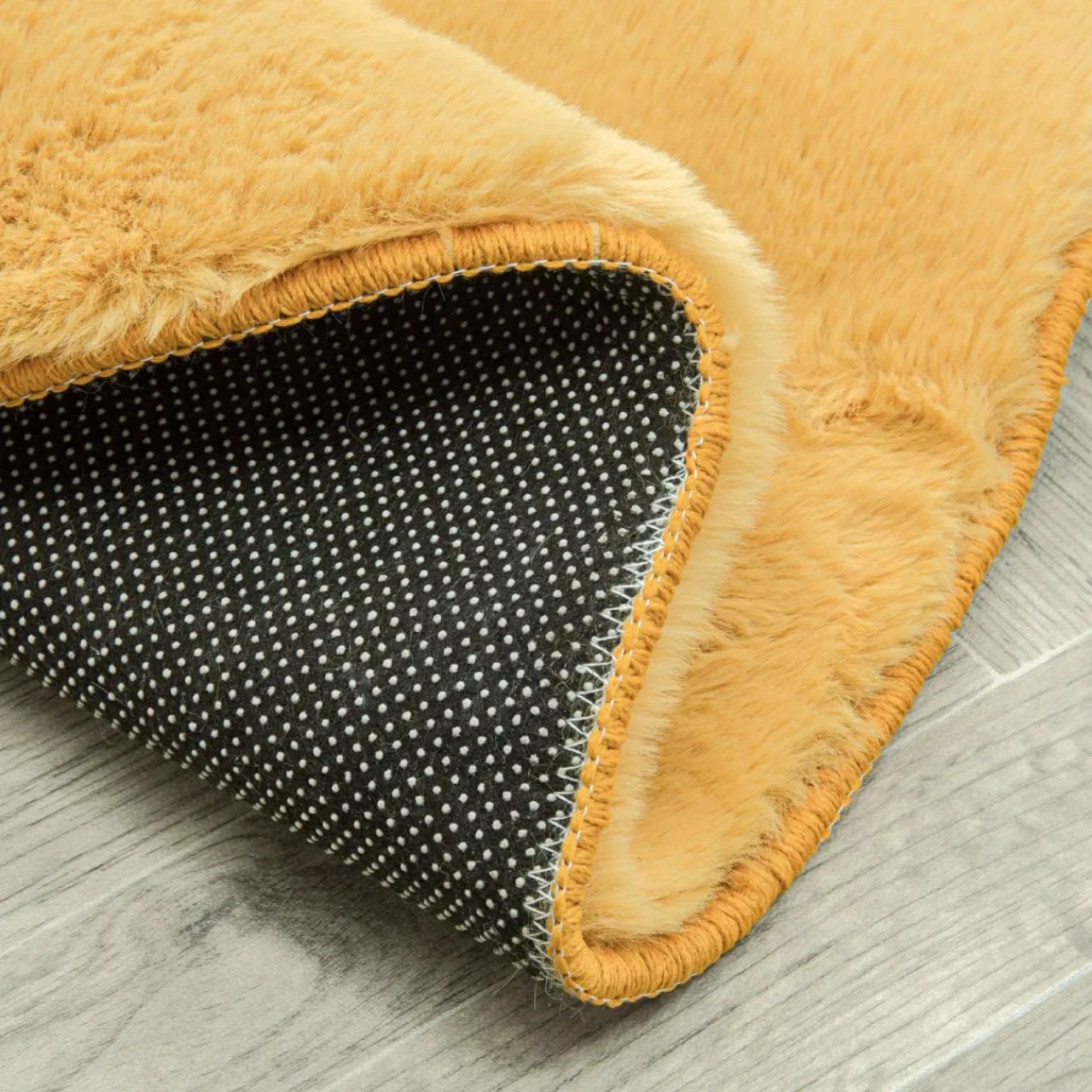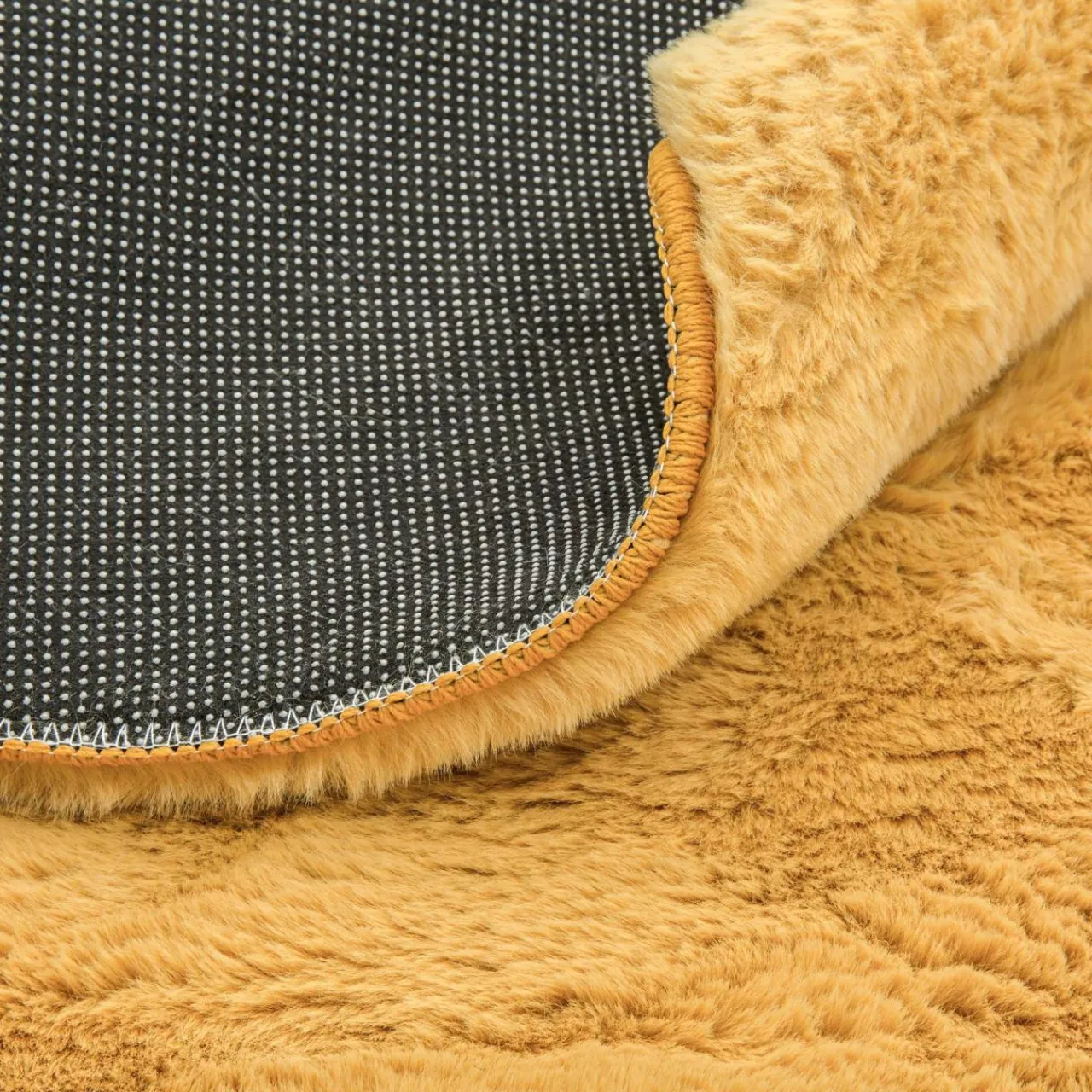 Chcesz udekorować salon lub sypialnię czymś wyjątkowym? Miodowy, okrągły dywan RABBII położysz przy fotelu, stoliku kawowym lub tuż przy łóżku – przyjemnie odizoluje Cię od zimnej podłogi.