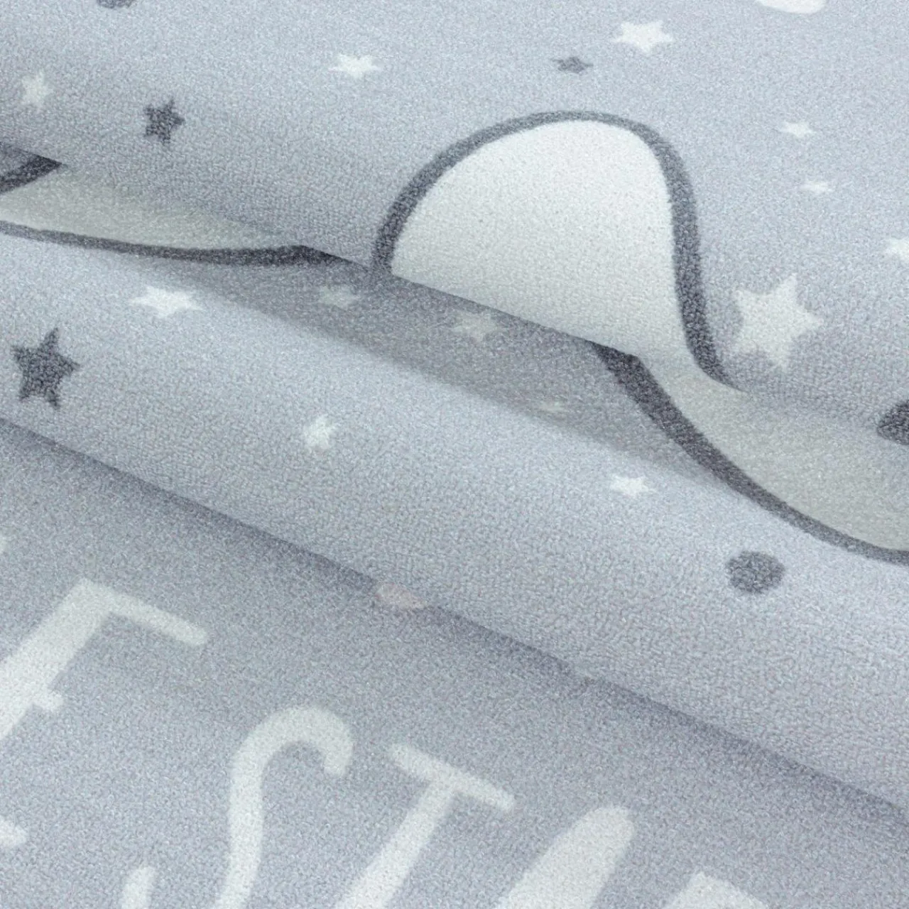 Twoje dziecko marzy o tym, aby przenieść się do bajkowego świata? Teraz to możliwe. Zdecyduj się na zakup szarego dywanu PLAY z motywem uśmiechniętej gwiazdki. Uroczy napis „Twinkle twinkle little star” odwołuje się do słów kołysanki, która w polskiej wersji językowej brzmi: „Mrugaj, mrugaj gwiazdko ma…”