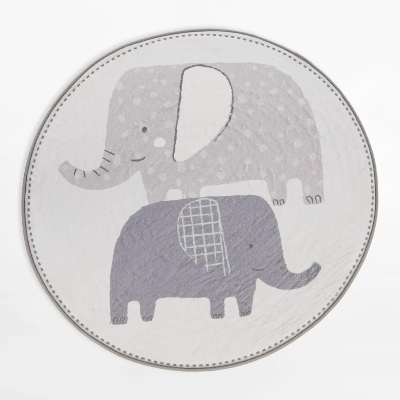 - Dywan ma tło utrzymane w kolorystyce ecru. Słonie są jasno- i ciemnoszare.