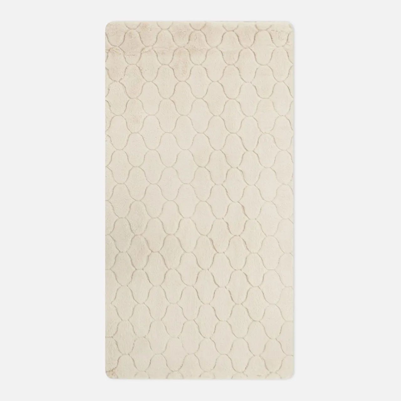 Dywan do przedpokoju z kolekcji SENTEZ wyróżnia się puszystym i miękkim w dotyku materiałem, przypominającym królicze futerko.