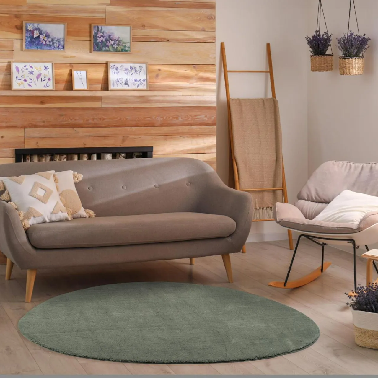 - Ciemnozielony kolor dywanu świetnie podkreśli aranżacje w stylu nowoczesnym i urban jungle.