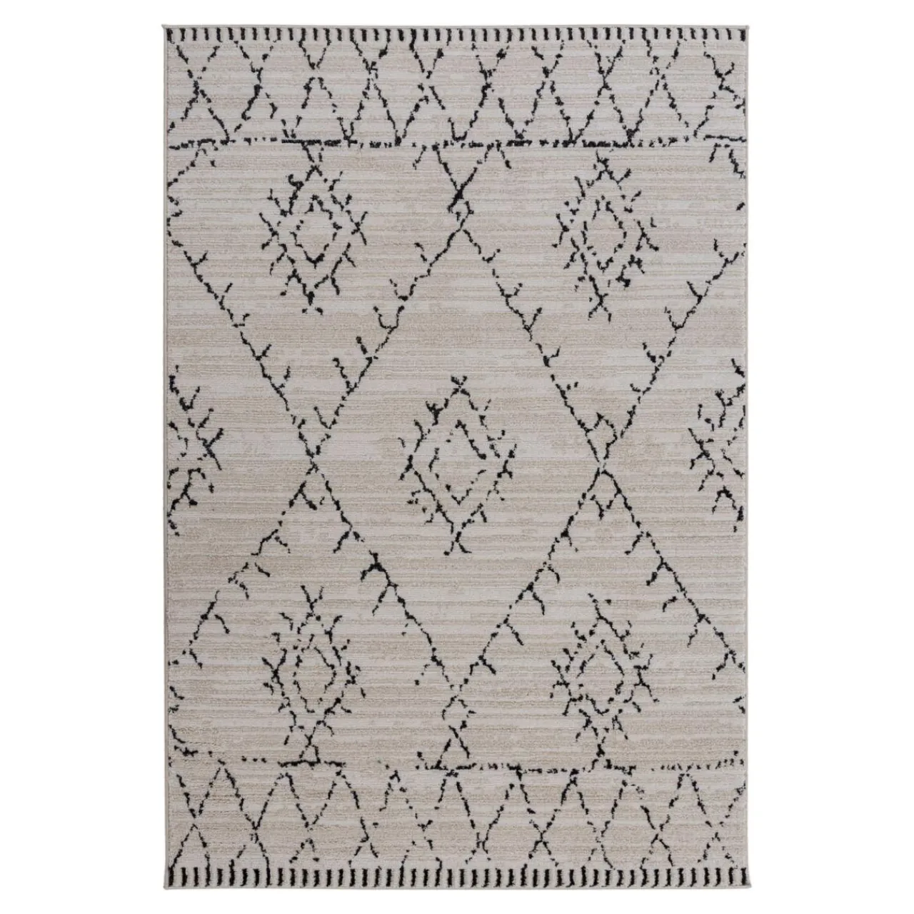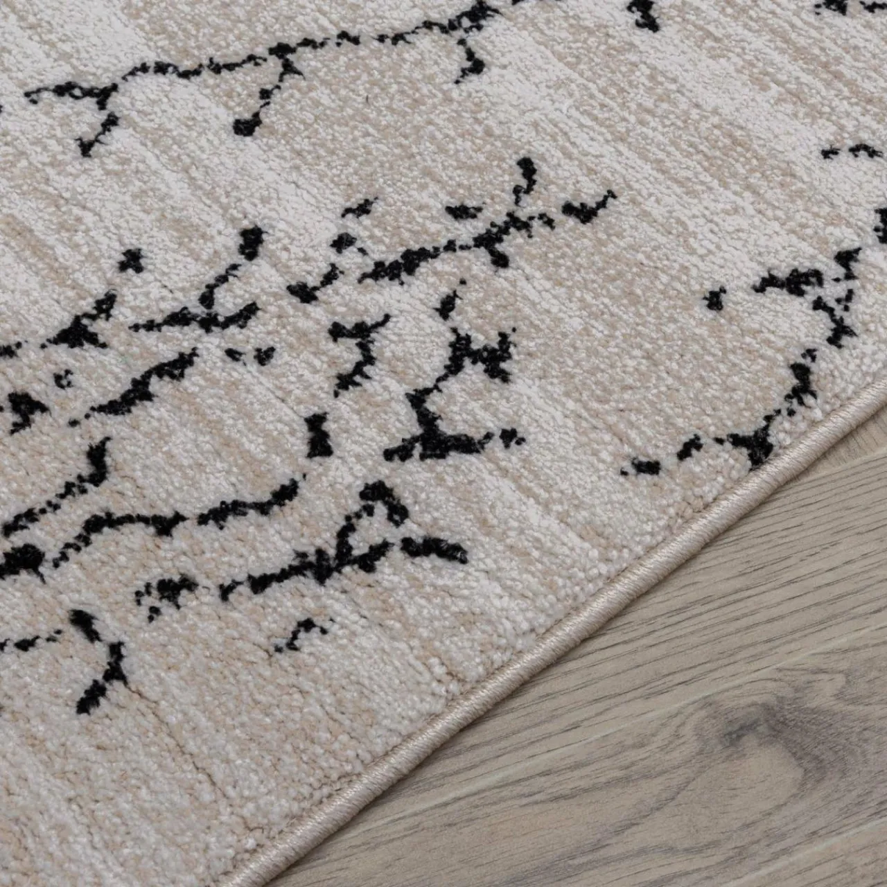 Dywan BOHO ozdobiony jest minimalistycznym wzorem, kojarzącym się z pozszywanymi skrawkami materiału.