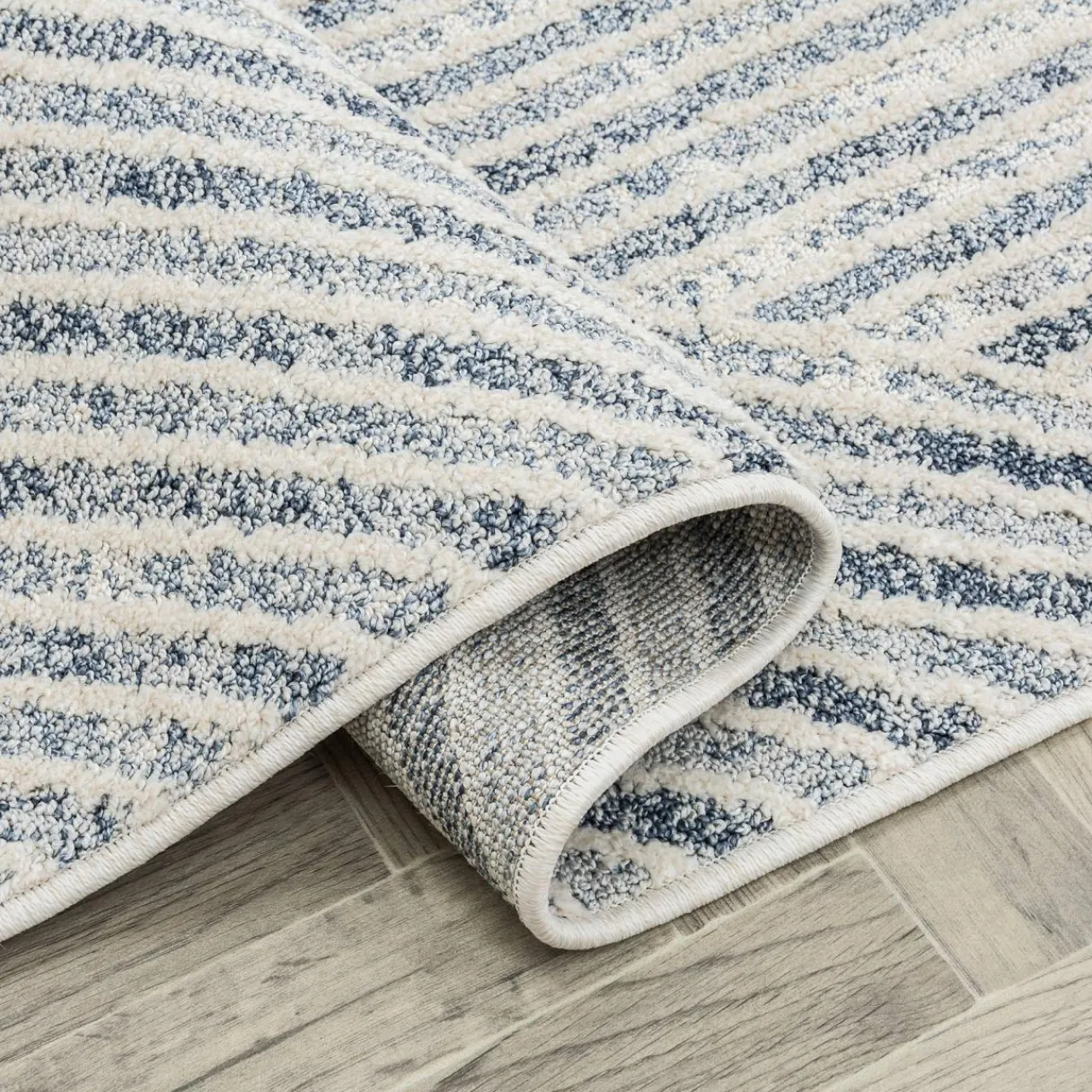 Geometryczny niebieski dywan PAULA – wykonanie