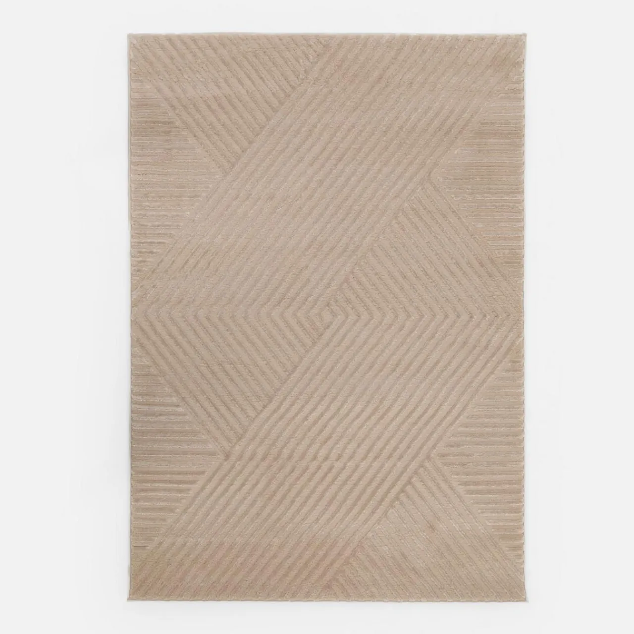 Dywan dzięki połączeniu długiego i krótkiego włosia tworzy efekt 3D mieniący się odcieniami beżów.
