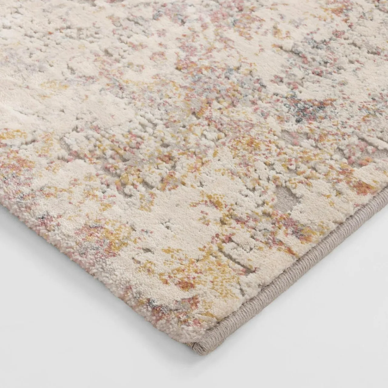 - Abstrakcyjny wzór dywanu niczym obraz ozdobi podłogę w pomieszczeniu.