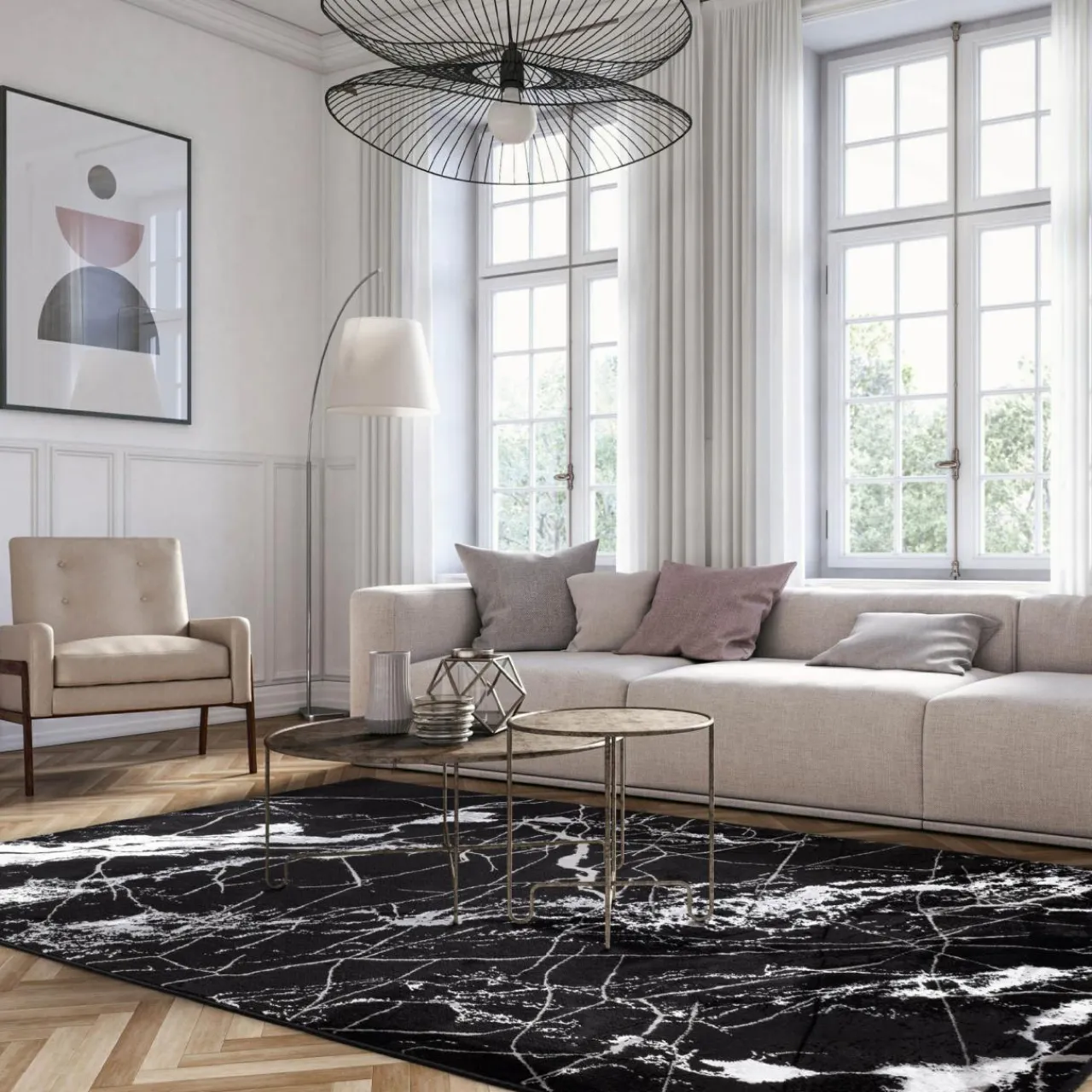 Marmurowy wzór dywanu jest dla Ciebie, jeśli cenisz elegancję i nowoczesny styl. Subtelnie i z klasą – tak, jak lubisz.