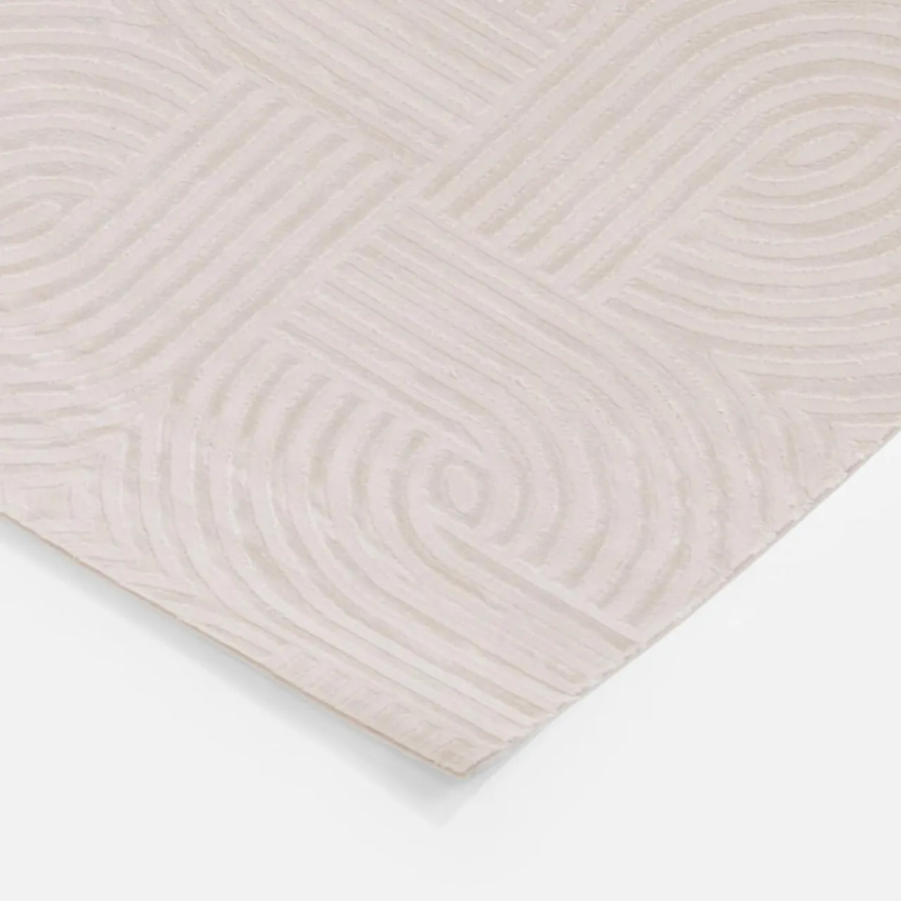 Dywan dzięki połączeniu długiego i krótkiego włosia tworzy efekt 3D mieniący się odcieniami kremu.