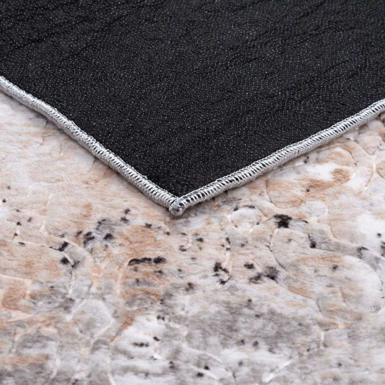 Szukasz dywanika, który znajdzie zastosowanie w salonie lub w sypialni, obok łóżka? Wybierz dywanik VISION w szarobeżowej kolorystyce z abstrakcyjnym wzorem. Nada wnętrzu industrialny charakter.