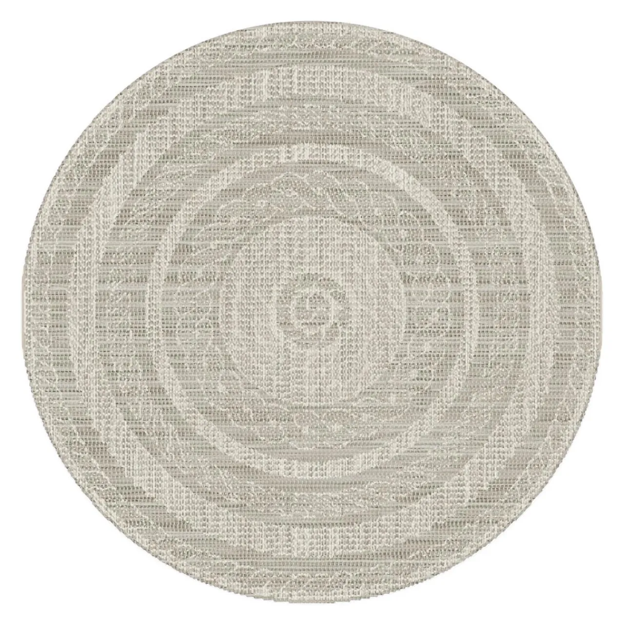 Dywan tkany na płasko ROUND ma subtelny wzór, który przypomina plecione warkocze.