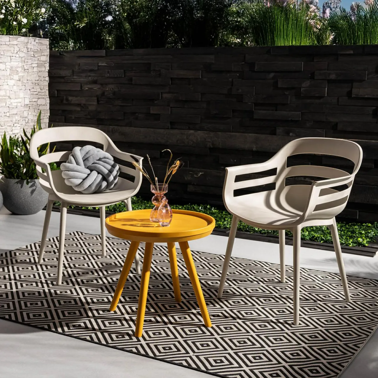 Kolekcja PIATTO to seria dywanów outdoorowych wykonanych z wysokiej jakości włókna polipropylenowego, dzięki czemu można je użytkować zarówno w pomieszczeniach, jak i na zewnątrz. Stanowią idealne uzupełnienie pomieszczeń aranżowanych w stylu orientalny, jak również urządzanych nowocześnie. Są doskonałą propozycją dekoracji balkonu, tarasu, czy altanki.