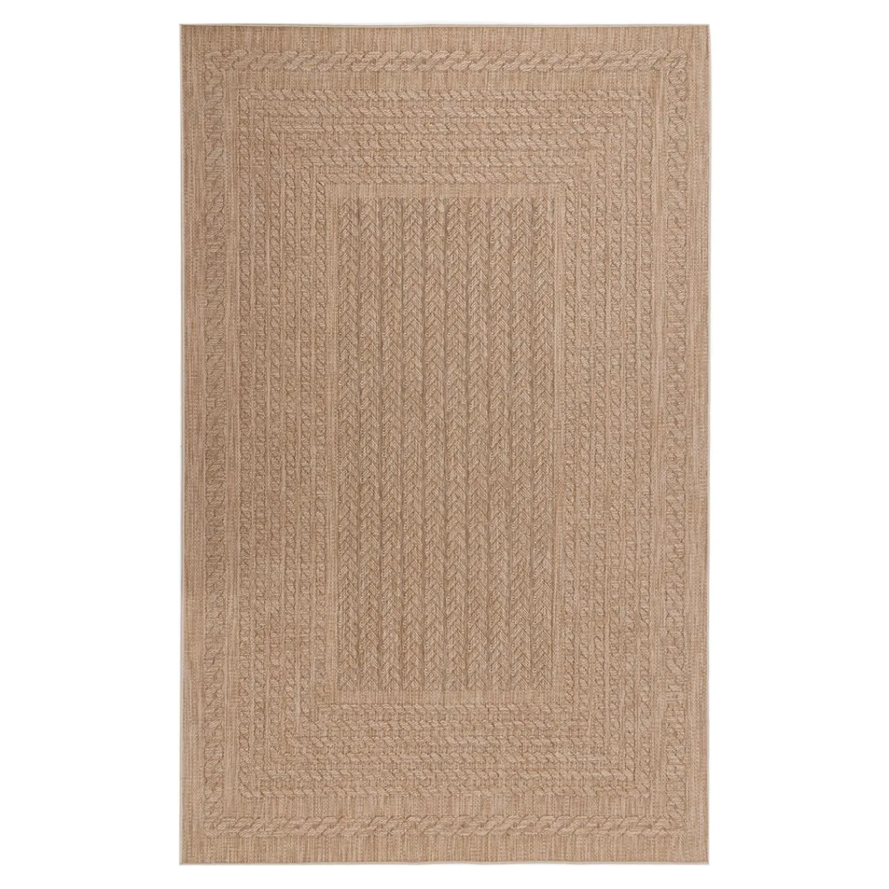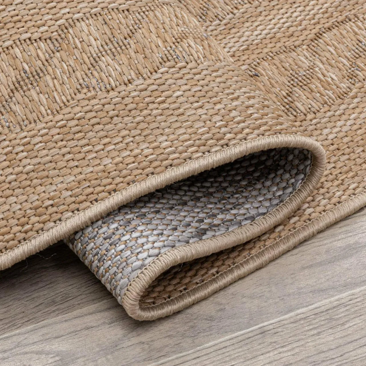 Dywan tkany na płasko ROUND ma subtelny wzór, który przypomina plecione warkocze.