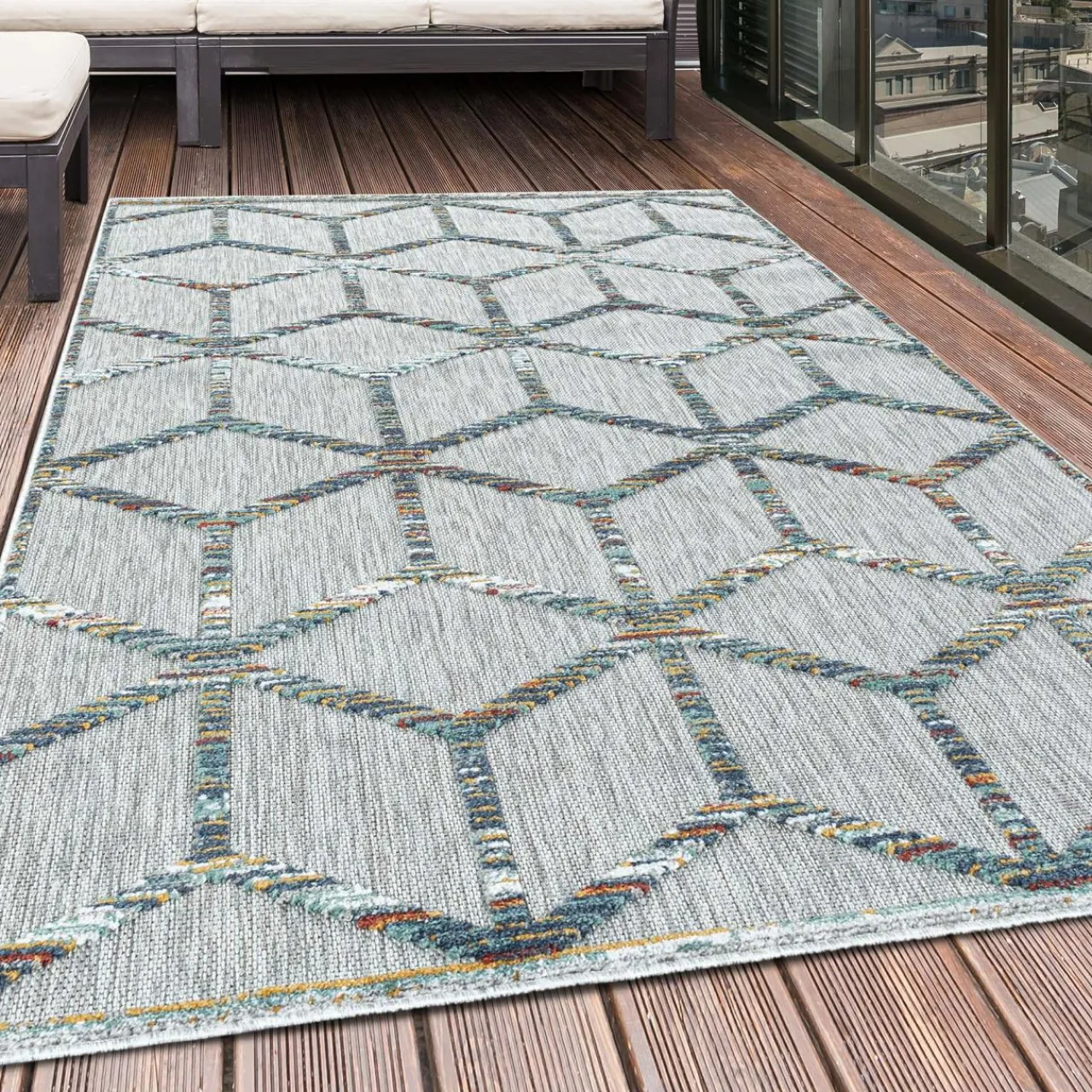 Szukasz dywanu, który doda szyku nowoczesnemu wnętrzu? Zdecyduj się na dywan BAHAMA z geometrycznym wzorem. Dzięki niemu Twoje wnętrze zyska loftowy sznyt.