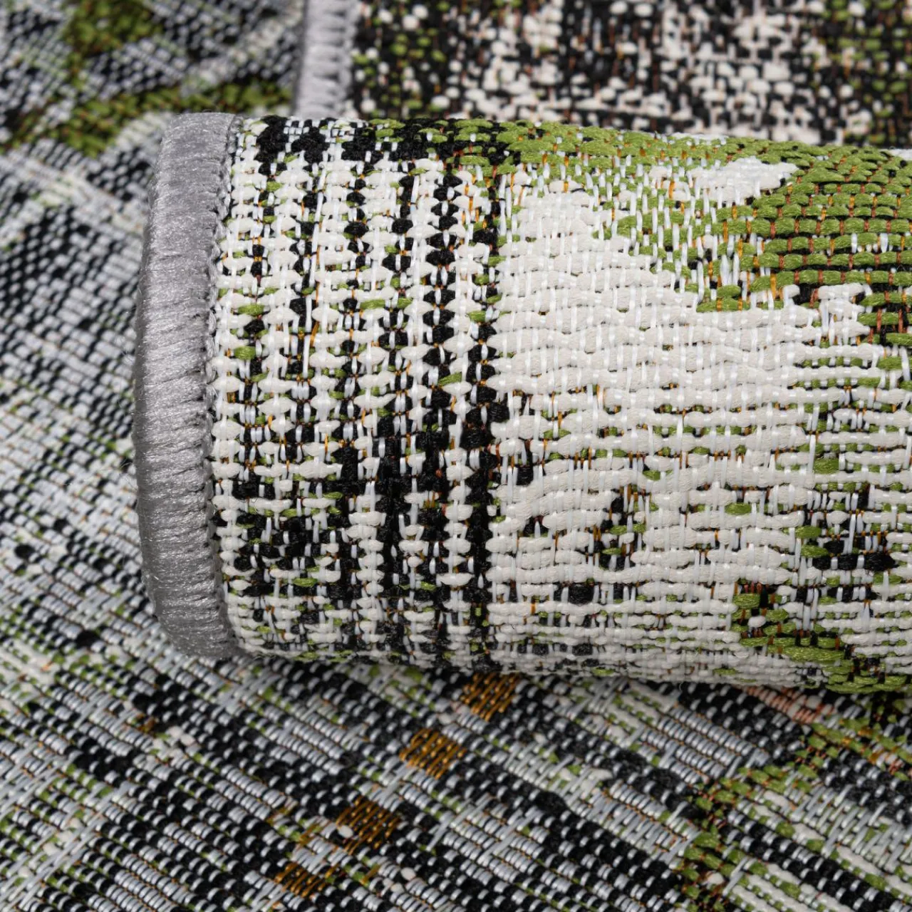 - Abstrakcyjny wzór budzi skojarzenia z płótnem malarskim. Dywan wygląda jakby był dziełem współczesnego twórcy, który zdecydował się rozmieścić na gotowym wydruku barwne plamy: białe i zielone wzory.