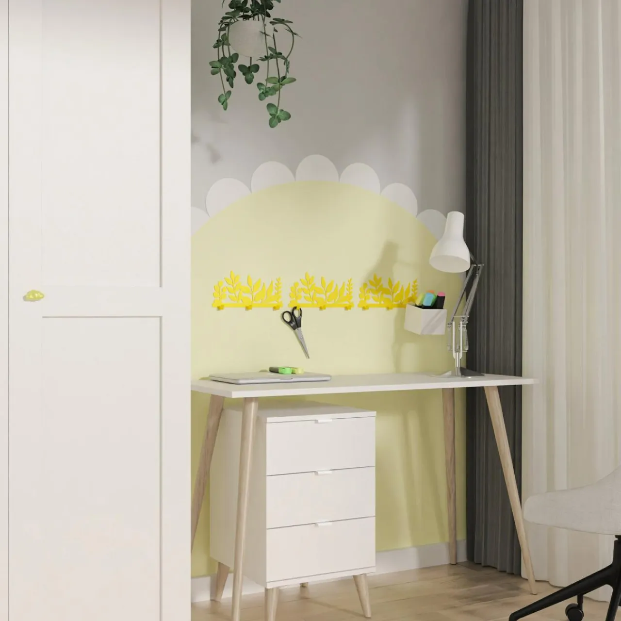 - Ozdobny, żółty wieszak LIŚCIE jest częścią kolekcji KIDDON ADBOX – mebli modułowych, przeznaczonych specjalnie do pokoju naszej pociechy.