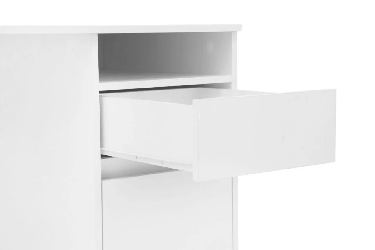 - Korpus niniejszego modelu został wykonany z płyty meblowej, wykończonej laminatem w białym kolorze