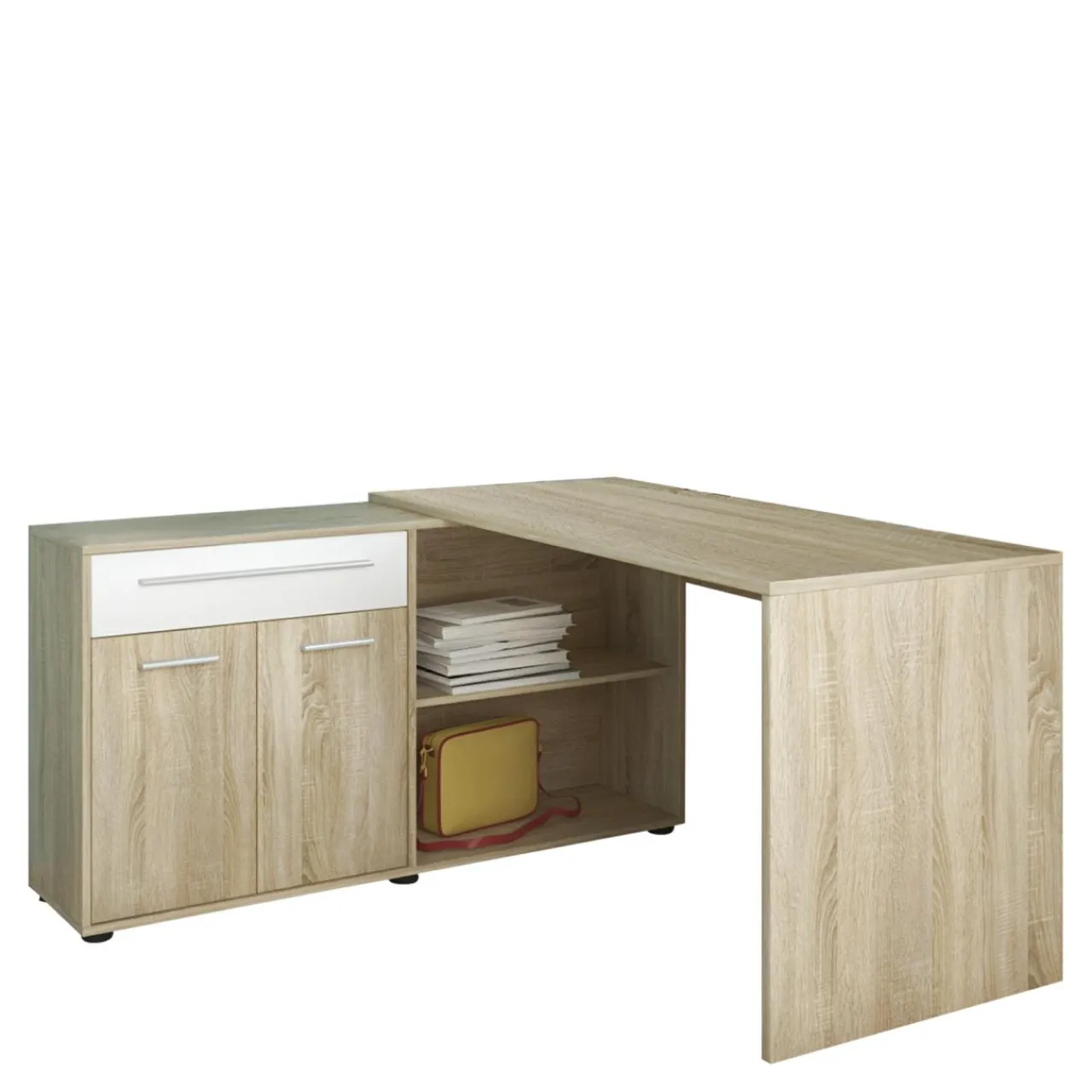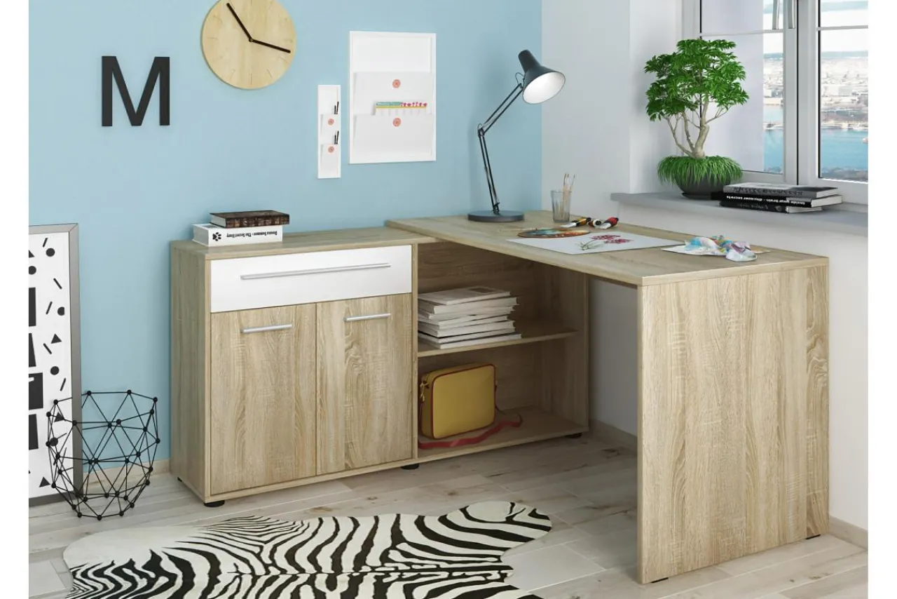 Biurko narożne perfekcyjne wykorzysta dostępną przestrzeń. Podczas montażu sam wybierasz układ biurka.