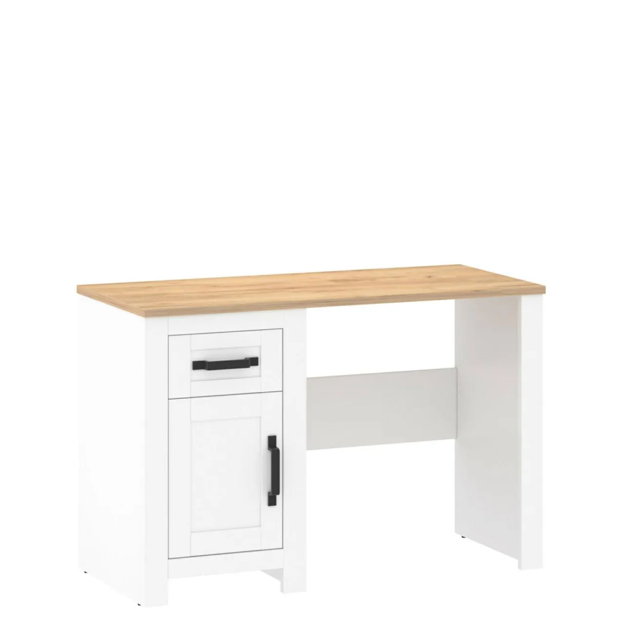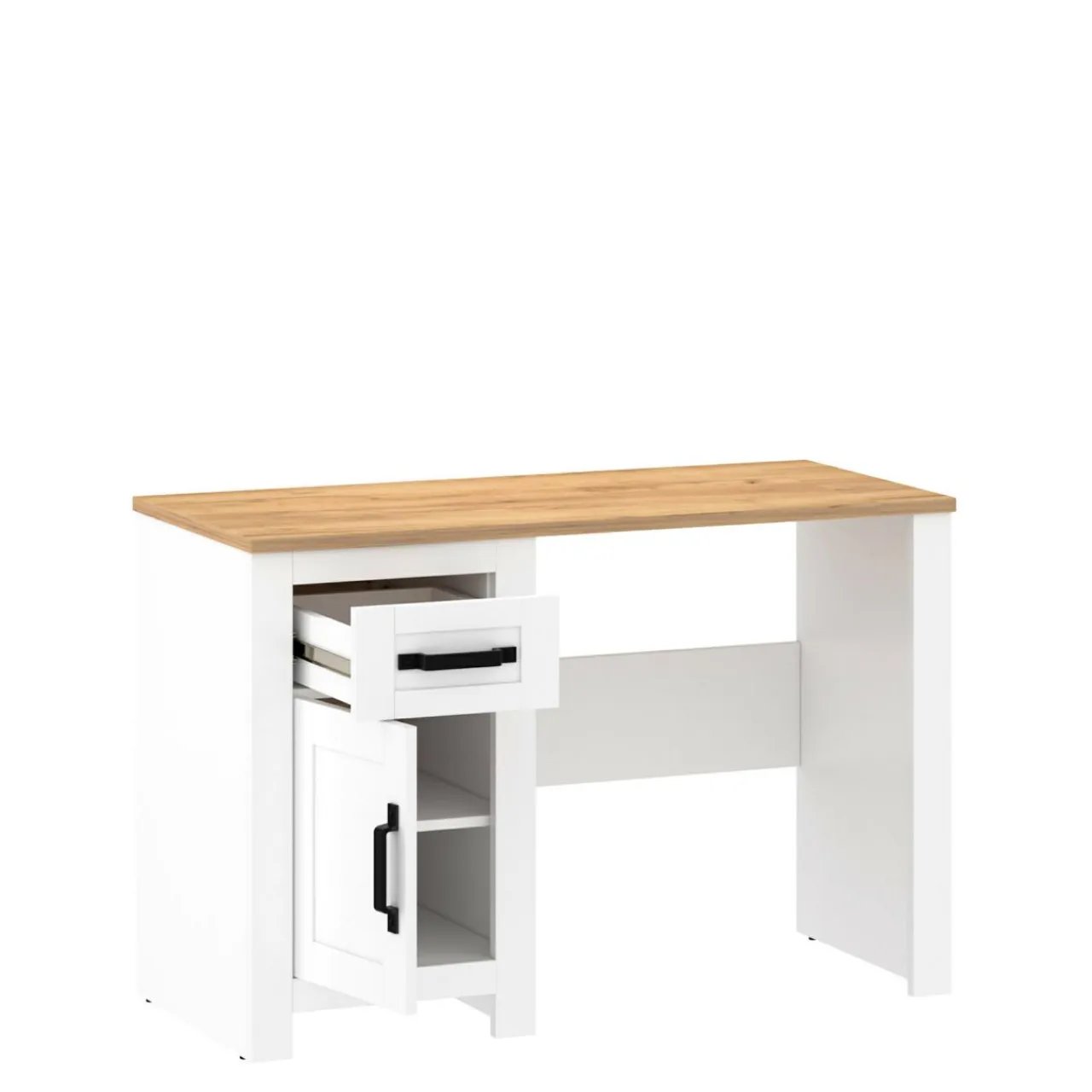 - Biurko jest wyposażone w szufladę oraz szafkę.
