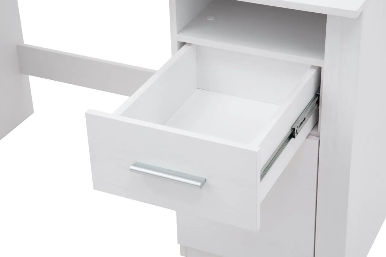- Biurko wykonano z laminowanej płyty meblowej w kolorze bielonej sosny andersen.