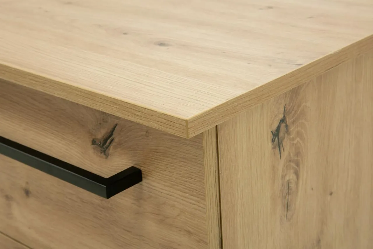 - Połączenie dębu artisan z metalowymi, czarnymi uchwytami sprawia, że mebel będzie idealnym dopełnieniem wnętrz w stylu industrialnym.