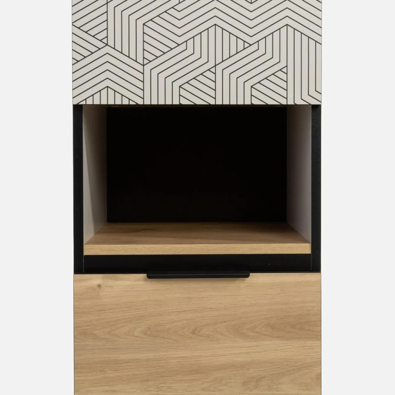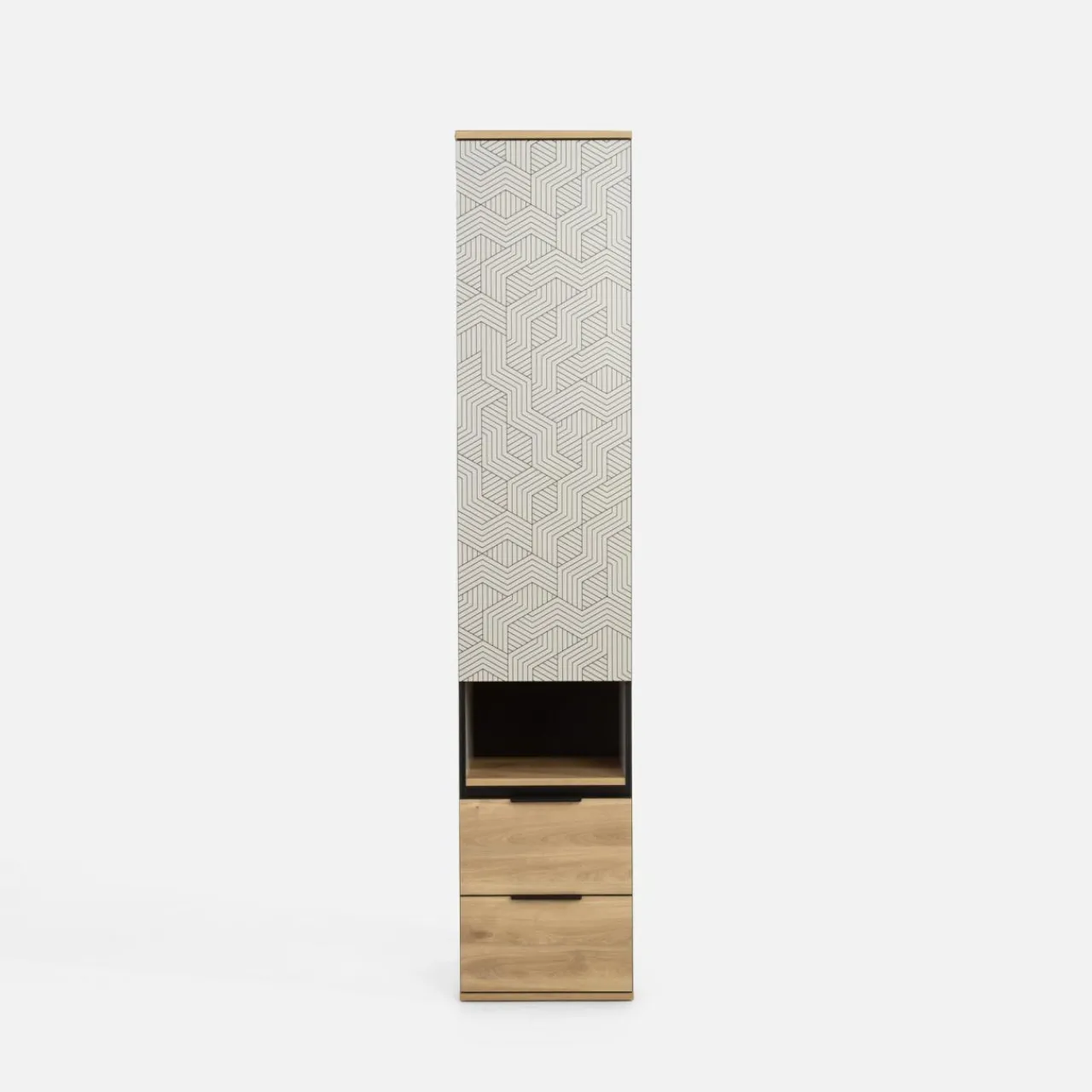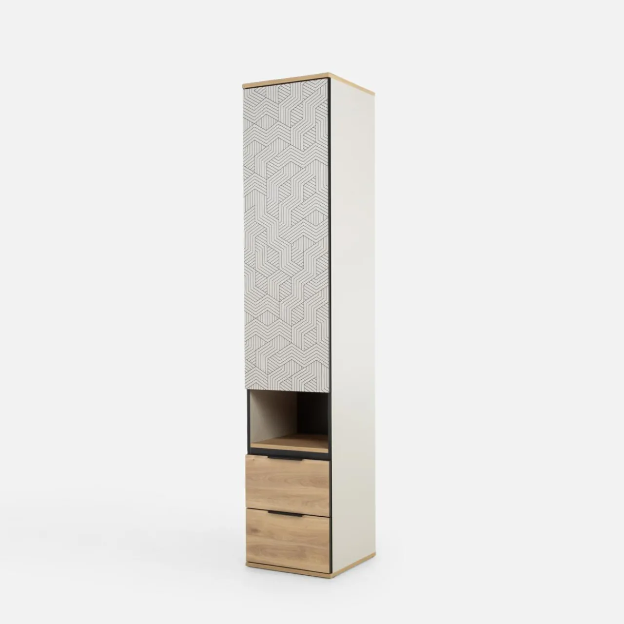 Wąska szafa MAZE będzie świetnym uzupełnieniem do pokoju. Może stanowić zarówno szafę, jak i zamknięty regał.