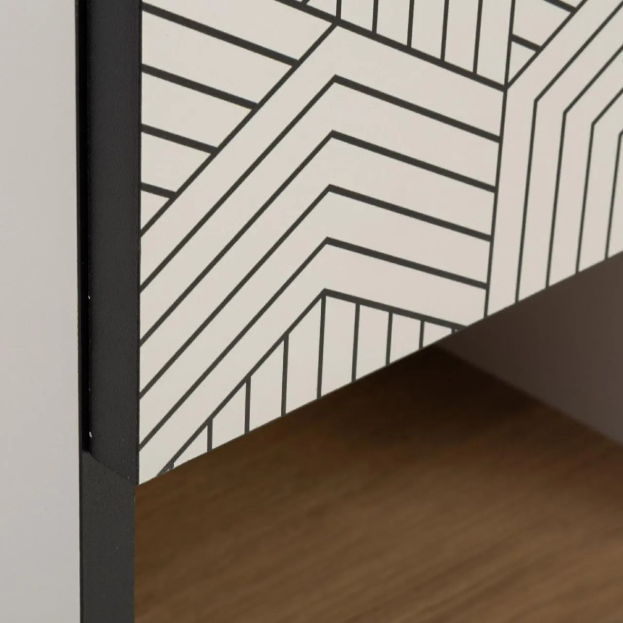 - Modne połączenie dębowego rysunku z kaszmirem przełamuje geometryczny wzór.
