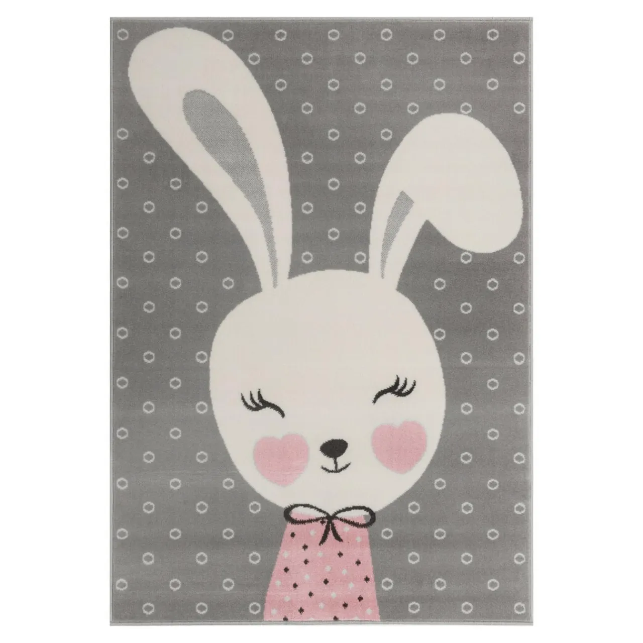 Do takiej aranżacji idealnie wpasuje się dywan dziecięcy z królikiem w różowym sweterku.