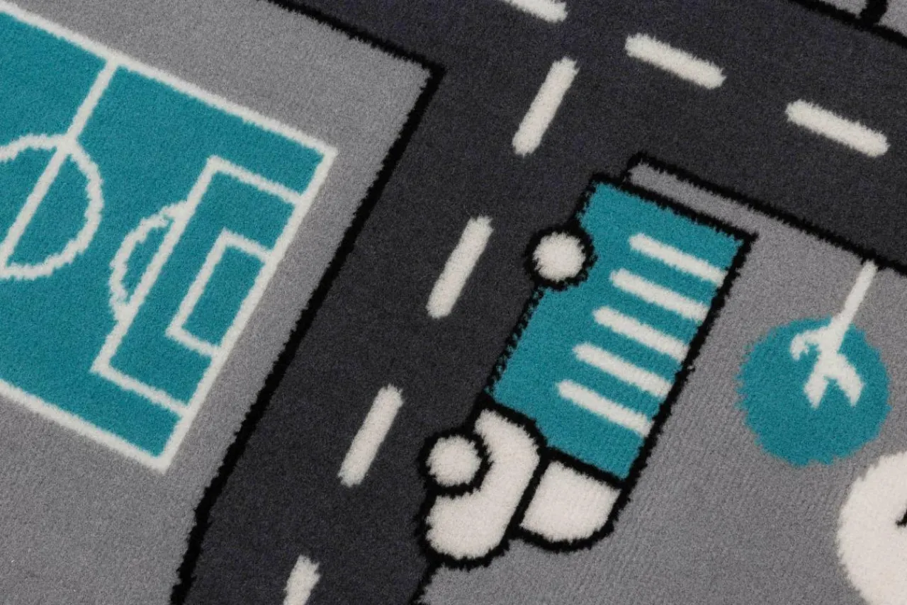 Dywan z wizerunkiem skrzyżowań i budynków zapewnia najlepszą zabawę autkami. Znajdzie się tu miejsce na budowlę z klocków, dom dla lalki i centrum obserwacyjne dla Spider-mana.