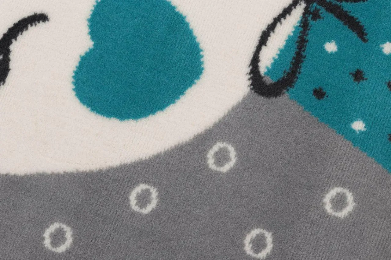 Do takiej aranżacji idealnie wpasuje się dywan dziecięcy z królikiem w turkusowym sweterku.