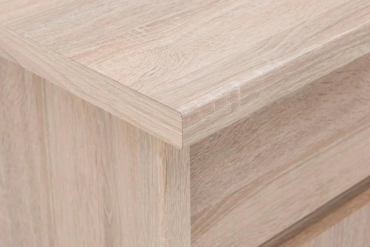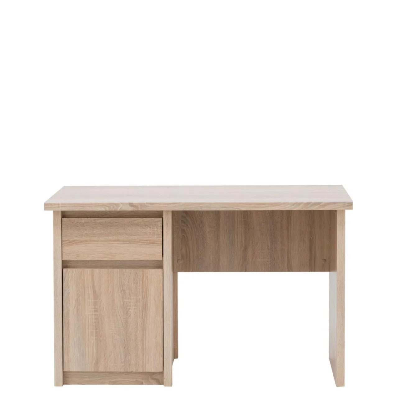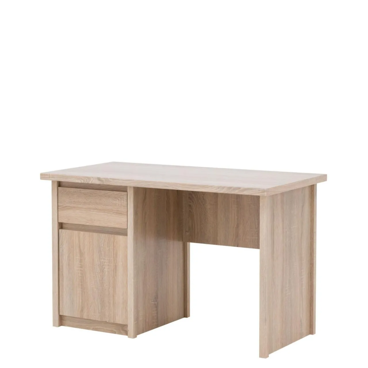 Biurko NORTON cechuje się prostą minimalistyczną formą, która sprawia, że mebel pasuje do nowoczesnych wnętrz. Laminat w jasnym kolorze dębu sonoma, dekorem przypominający drewno, wprowadzi do biura, domowego gabinetu lub pokoju młodzieżowego przytulny klimat. Brak tradycyjnych uchwytów sprawia, że mebel łatwiej wkomponować w dowolną aranżację.
