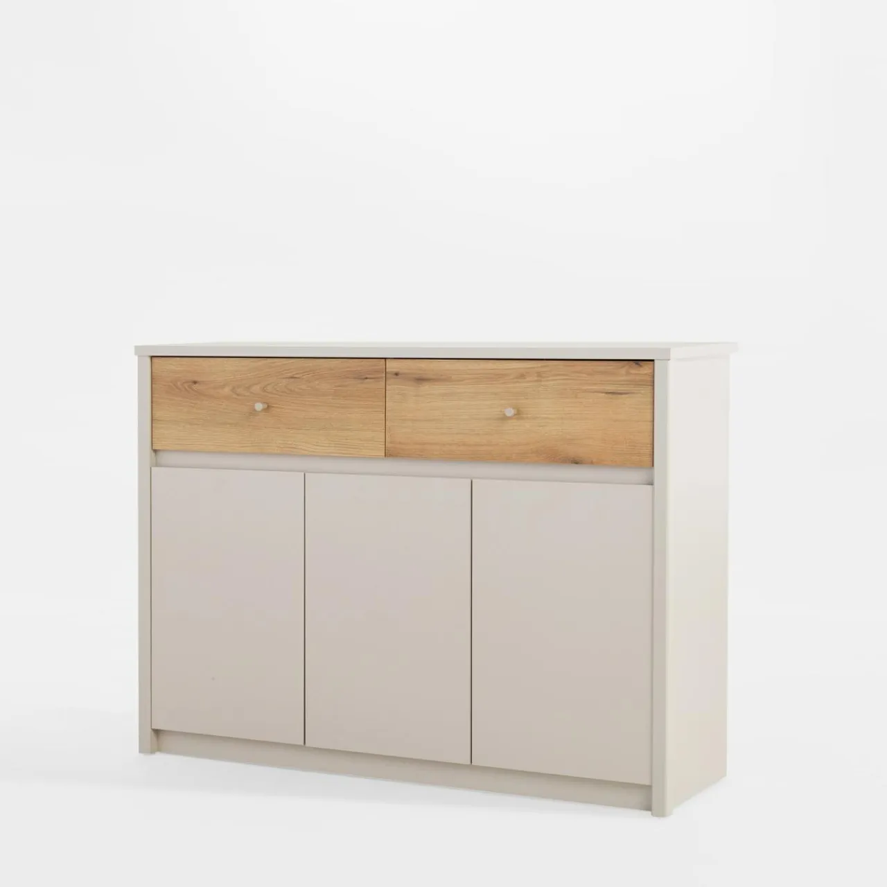 Komoda KARIN sprawdzi się zarówno w jadalni, ale również pokoju dziennym i sypialni. W 3 szafkach przechowasz różne, większe przedmioty — naczynia, tekstylia domowe czy pościel.