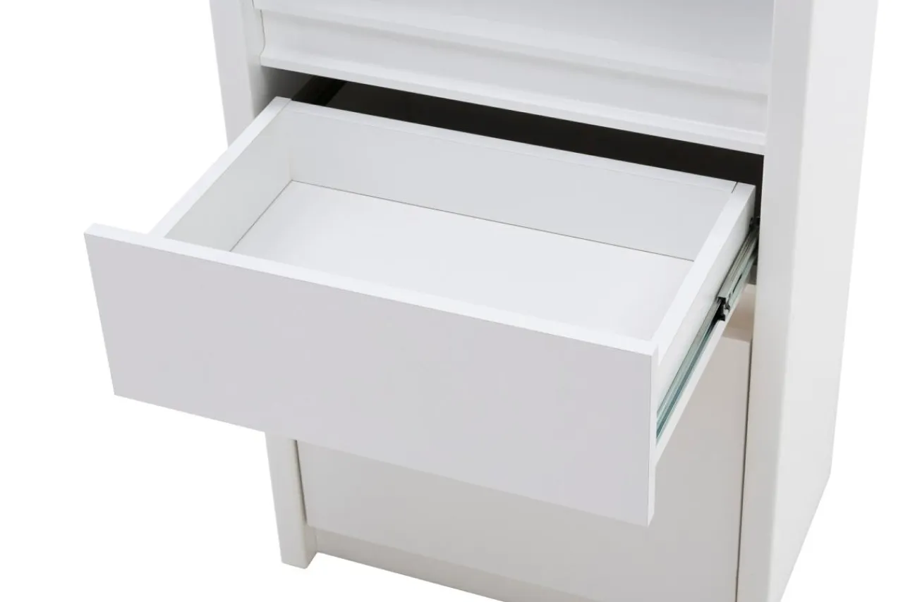 Uniwersalna kolorystyka regału ERDEN sprawia, że pomieszczenie wydaje się większe i jaśniejsze, a ponadto dobrze łączy się z kompozycjami aranżacyjnymi utrzymanymi w nowoczesnym stylu.