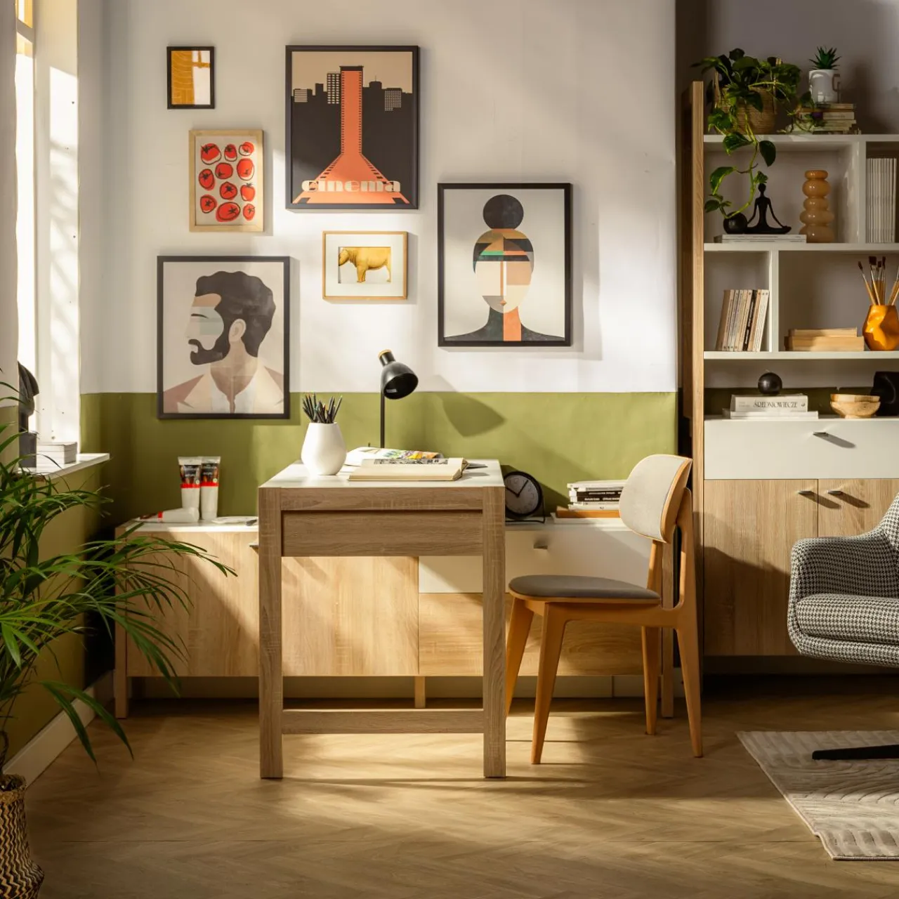 Biurko HOYVIK zostało zaprojektowane z myślą o domowych biurach lub pokojach młodzieżowych, w których pracujemy lub uczymy się.
