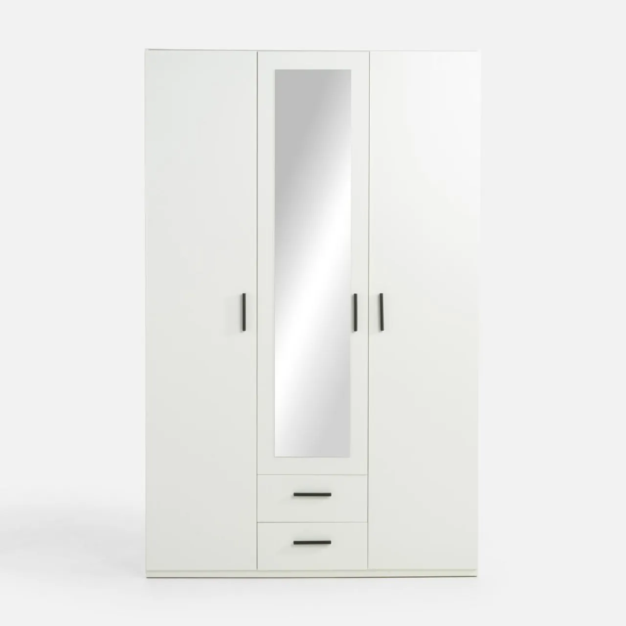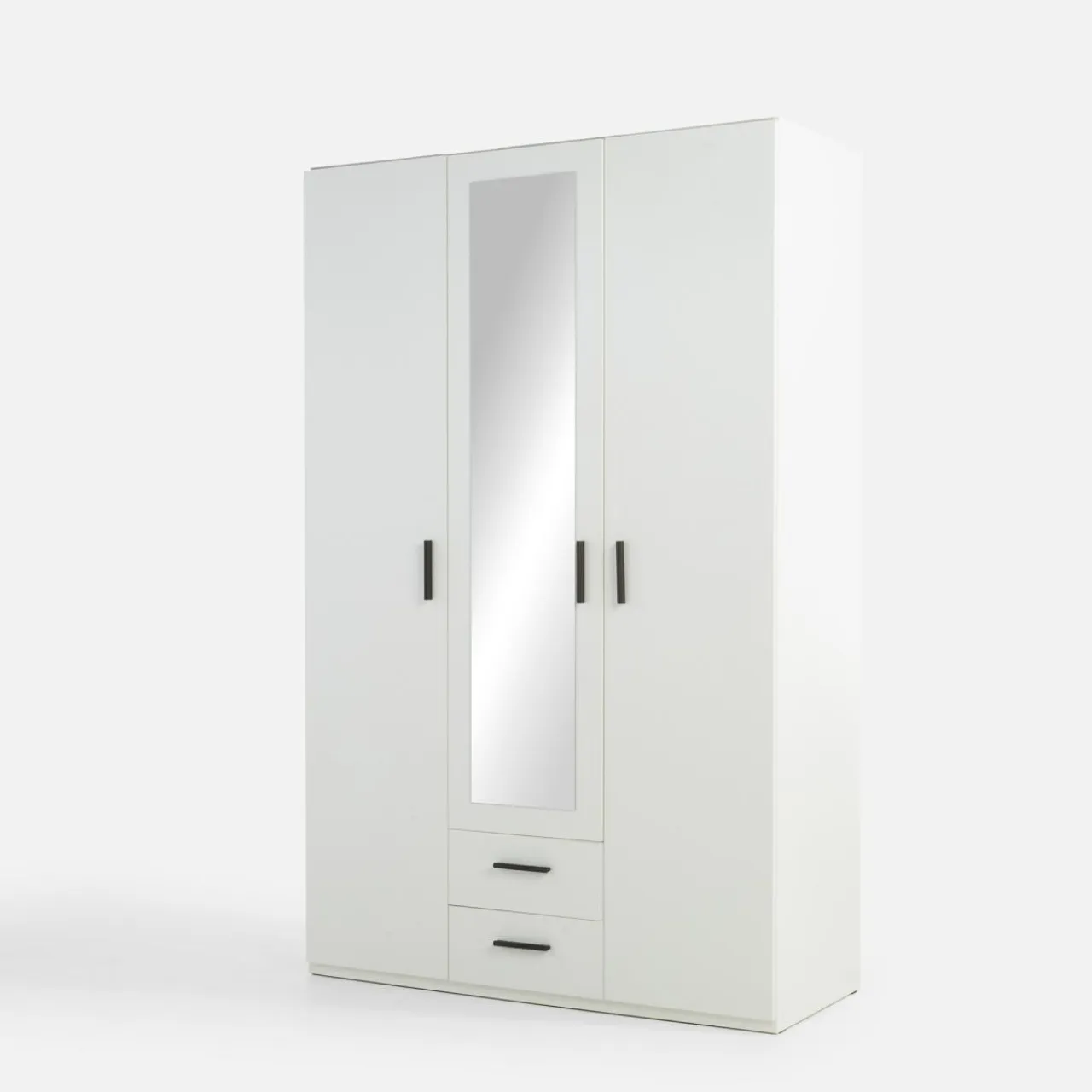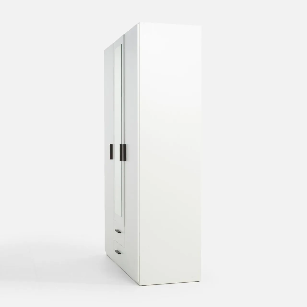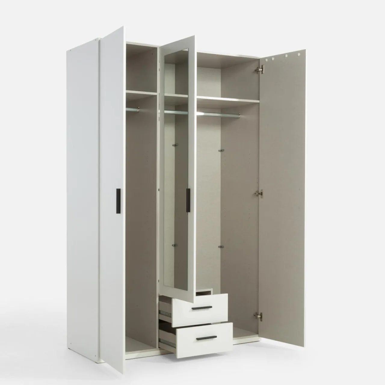 Z szafą TRAWEN oddzielisz odzież wierzchnią od pozostałej części garderoby. Nad drążkami znajdują się półki, na których poukładasz resztę ubrań i dodatki, a w szufladach pomieścisz bieliznę.