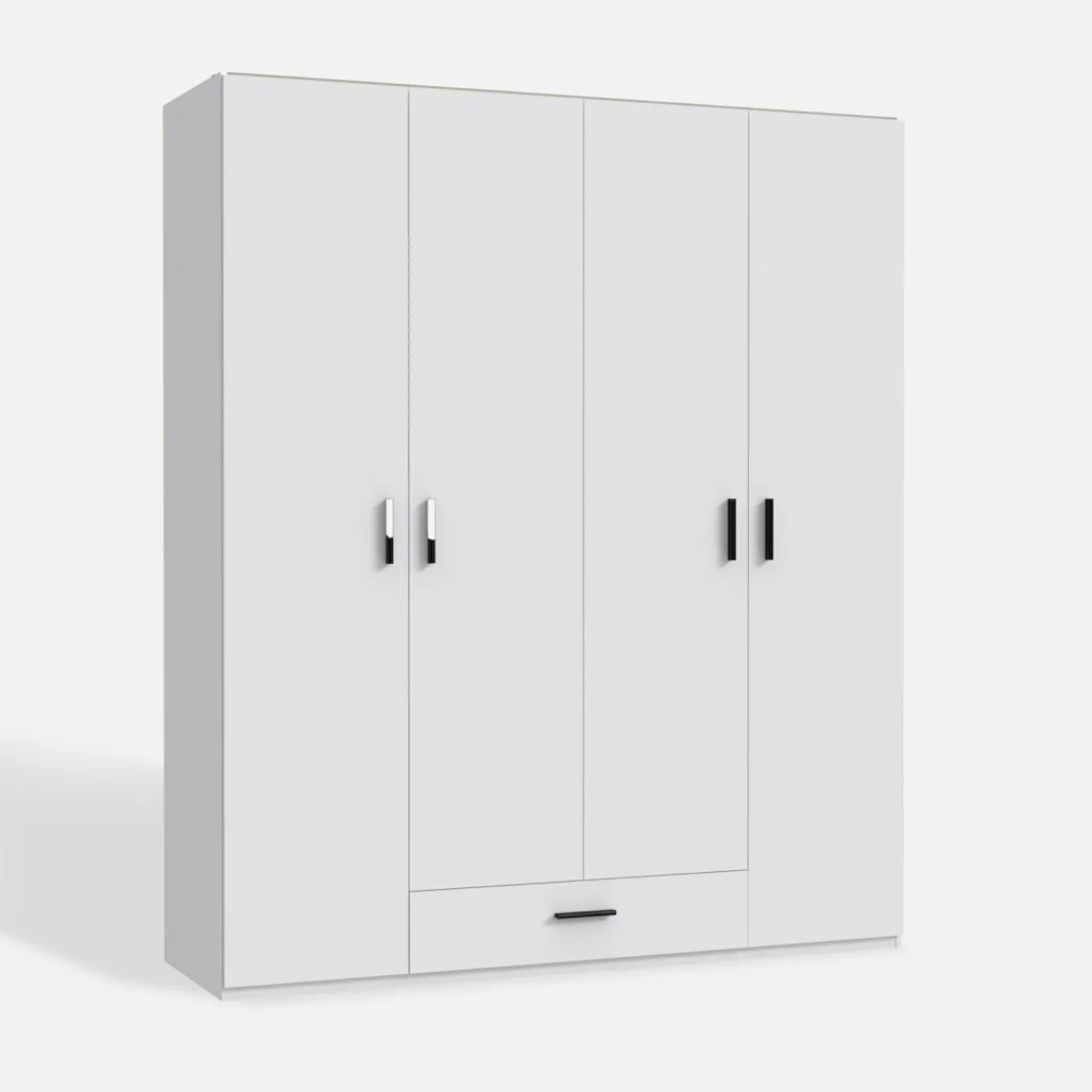 Szafa TRAWEN to idealne rozwiązanie dla dwojga. Każda strona posiada półkę, drążek oraz pół szuflady, dzięki czemu ubrania nie wymieszają się, zachowując porządek w środku.