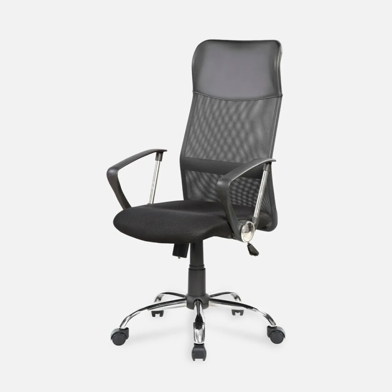 - Siatka mesh na oparciu jest przewiewna, co zapewni komfort pracy w cieplejsze dni.
