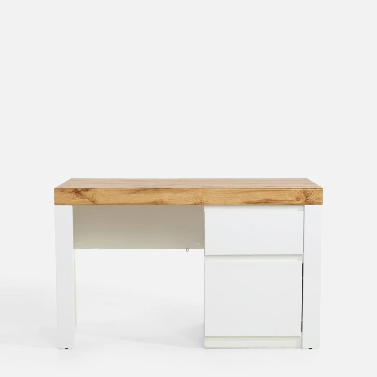 Biurko TAURUS II dzięki szerokiemu blatu oraz bocznej zabudowy z szafką i szufladą, sprawdzi się zarówno do nauki, jak i wieczornego serialu.