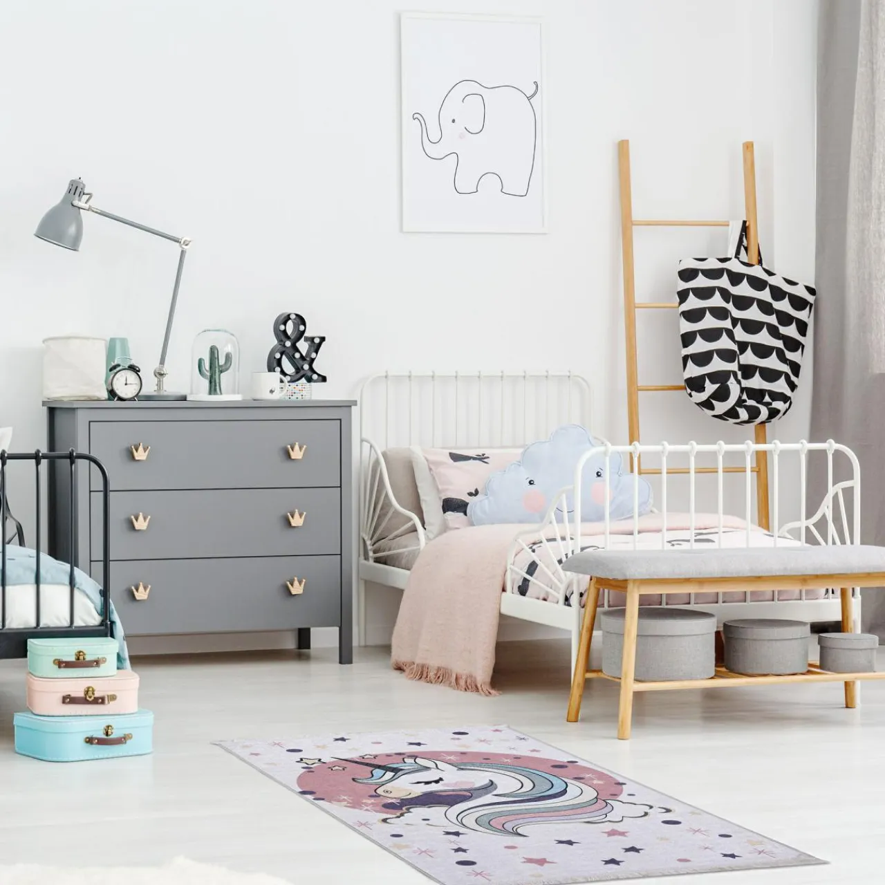 Chcesz stworzyć swojej księżniczce przyjemne miejsce do zabawy? Ozdób jej pokój wyjątkowym pokryciem podłogowym: dywanem UNI PETRA z motywem jednorożca. Wniesie do pokoju Twojego dziecka mnóstwo radości i pozytywnej energii.