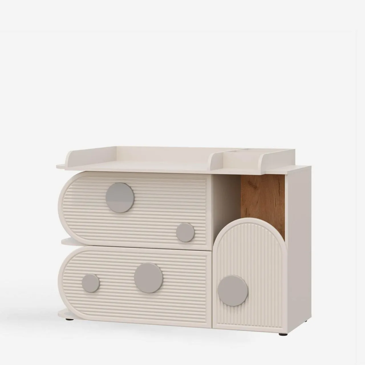 Komoda PING świetnie sprawdzi się przy maluszku. Wszystkie akcesoria, pieluszki i dodatkowe ubranka będą w jednym miejscu. Gdy dziecko podrośnie, w środku przechowasz bieliznę i koszulki.