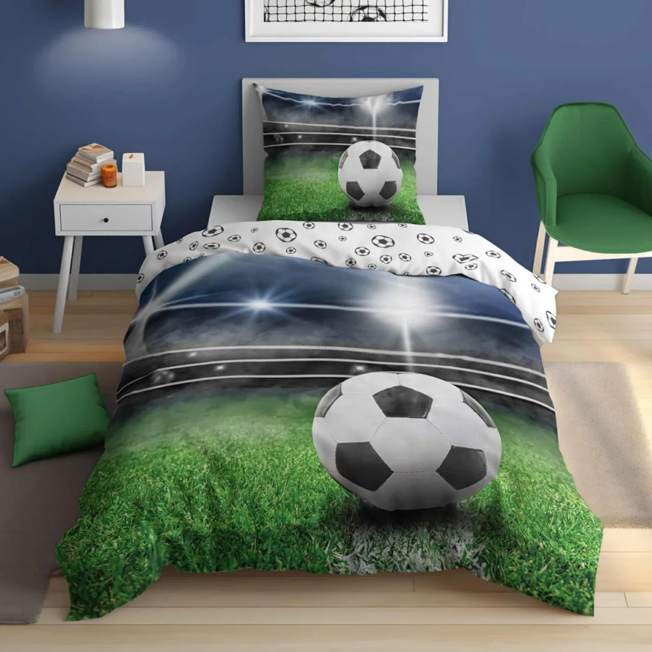 Pokój nastolatka nabierze indywidualnego charakteru dzięki dwustronnej pościeli PIŁKA.
