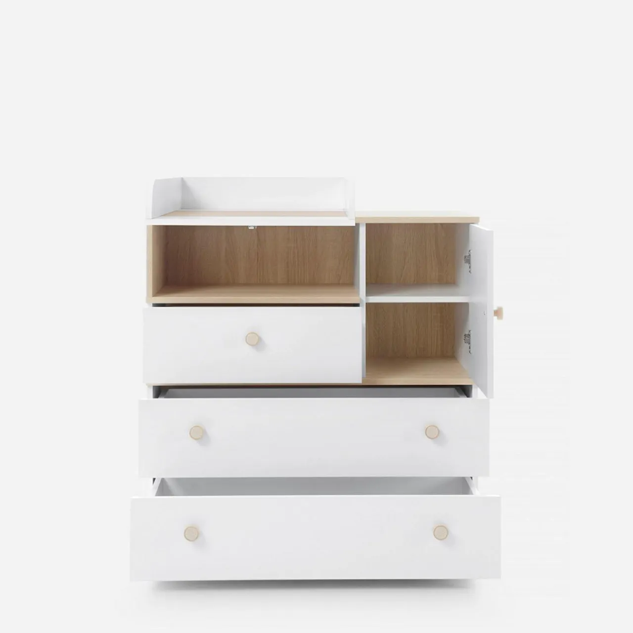 - Wysokie ramy przewijaka tworzą bezpieczną przestrzeń dla dziecka.