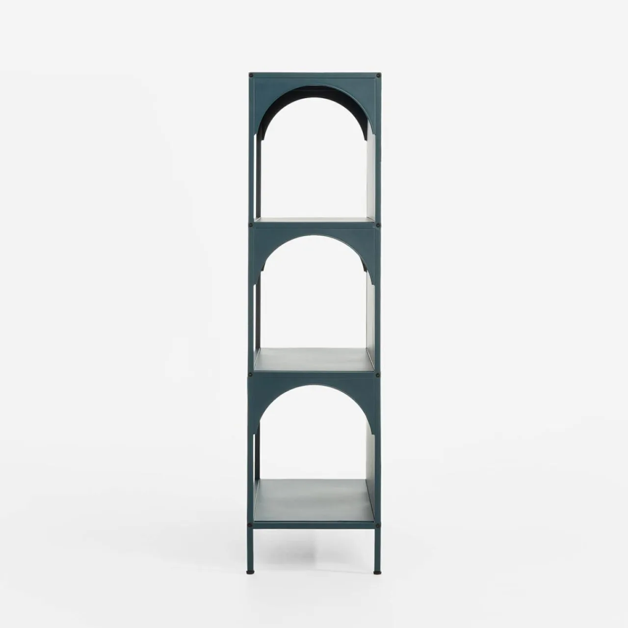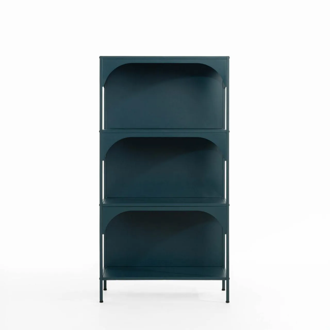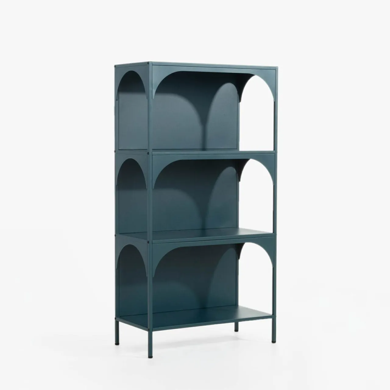 Regał HOCCA w niebieskim kolorze łączy industrialne akcenty z nowoczesnym designem, tworząc elegancką i funkcjonalną przestrzeń do przechowywania.