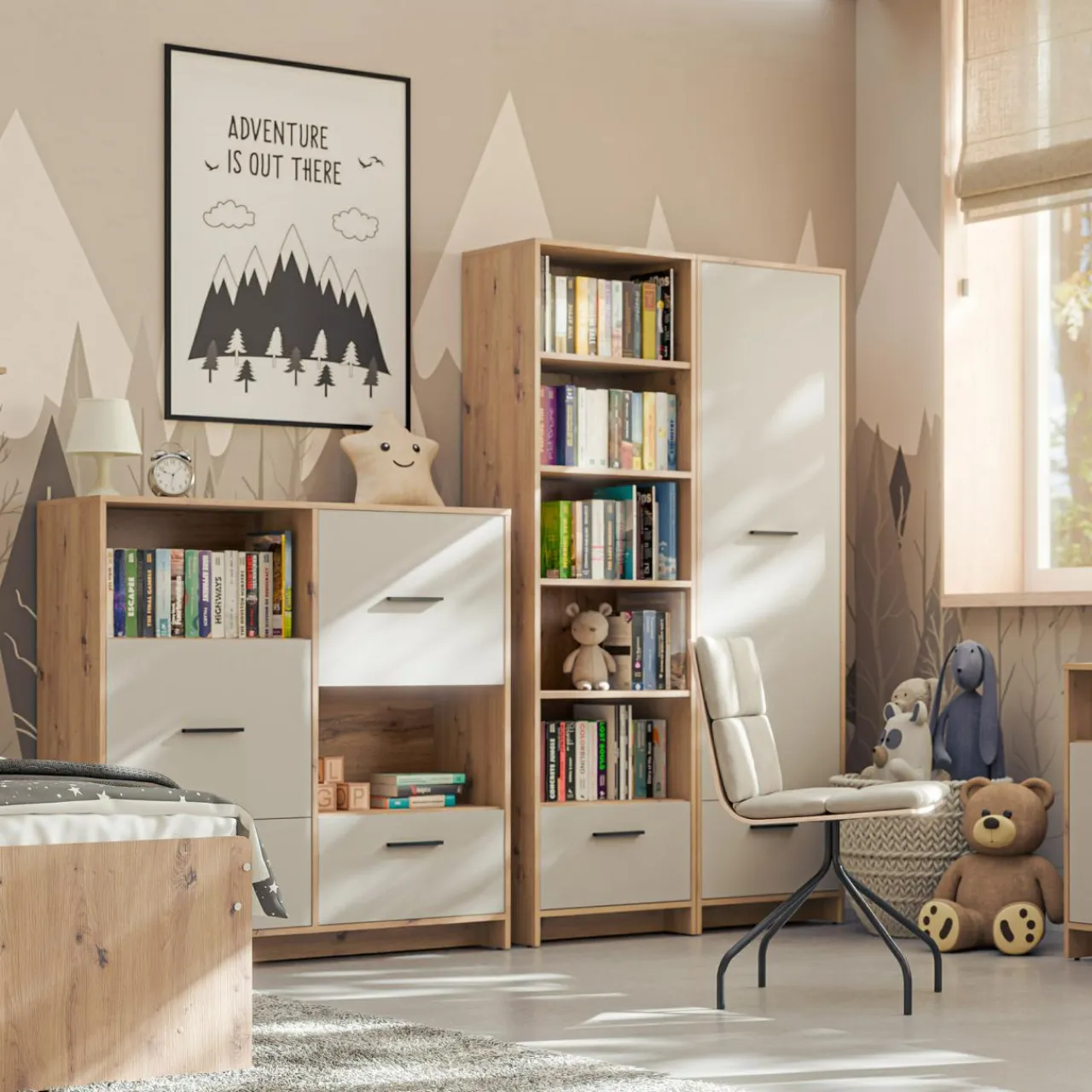 - Regał pasuje do pokoju dziecięcego, ale możesz go umieścić w swojej sypialni.