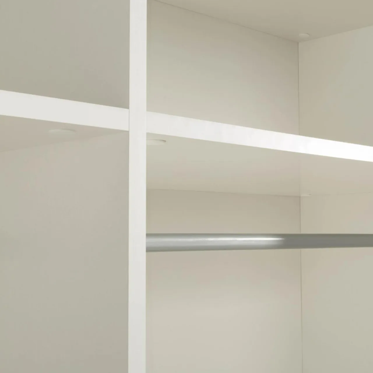 Szafa METROPOLITAN posiada w środku 2 drążki na ubrania oraz 4 półki. Dzięki takiemu układowi oddzielisz swoją odzież od partnera lub sezonową od aktualnie noszonej.